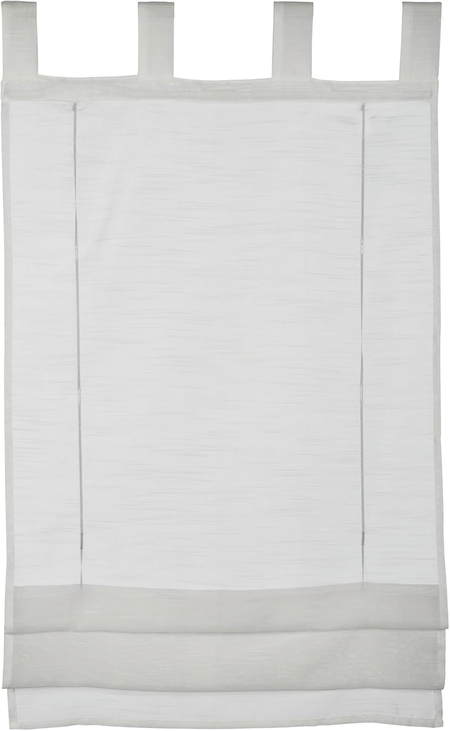 Le tissu, léger et transparent, offre une sensation de voile sans voiles épais, avec une légère texture rayée qui ajoute du caractère sans nuire à la clarté de la pièce. Le coloris blanc contribue à une ambiance lumineuse et neutre, facilement associable à divers styles d’intérieur. Il convient de noter que le rendu sur écran peut légèrement varier par rapport à la réalité en raison des variations d’éclairage.