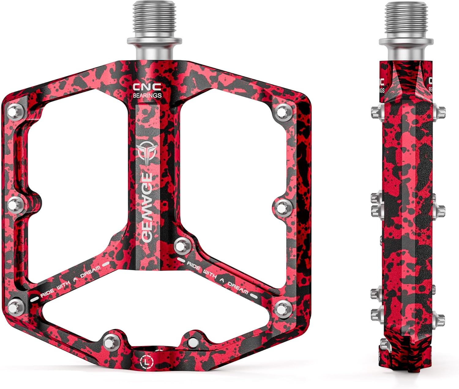 - GEWAGE Pédales Plate MTB en alliage d’aluminium usiné CNC (axe 9/16) – set antidérapant pour VTT et gravel