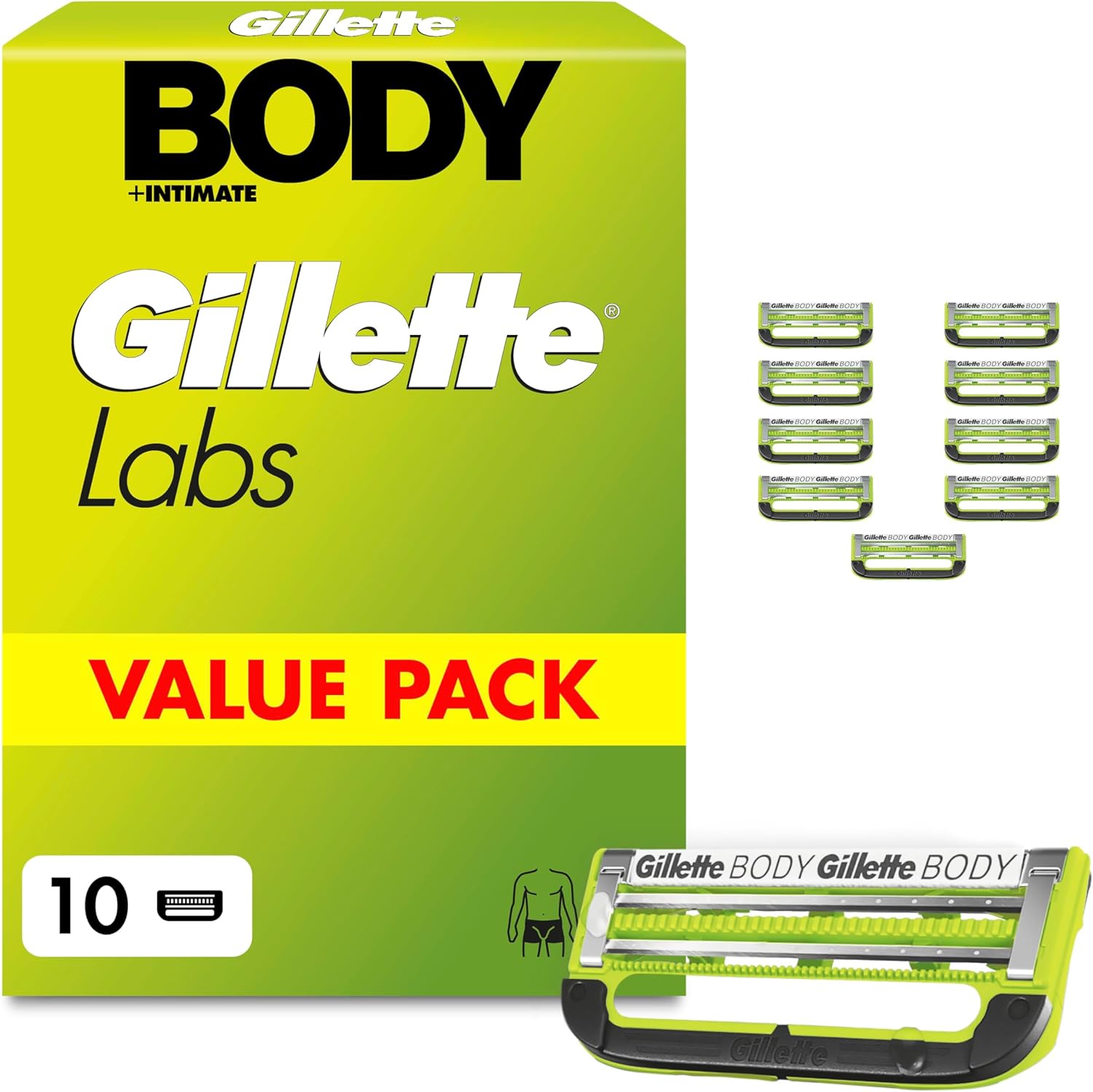 Gillette Labs Body + Intimate : 10 recharges de lames pour le rasage du corps et de la zone intime (2 lames)