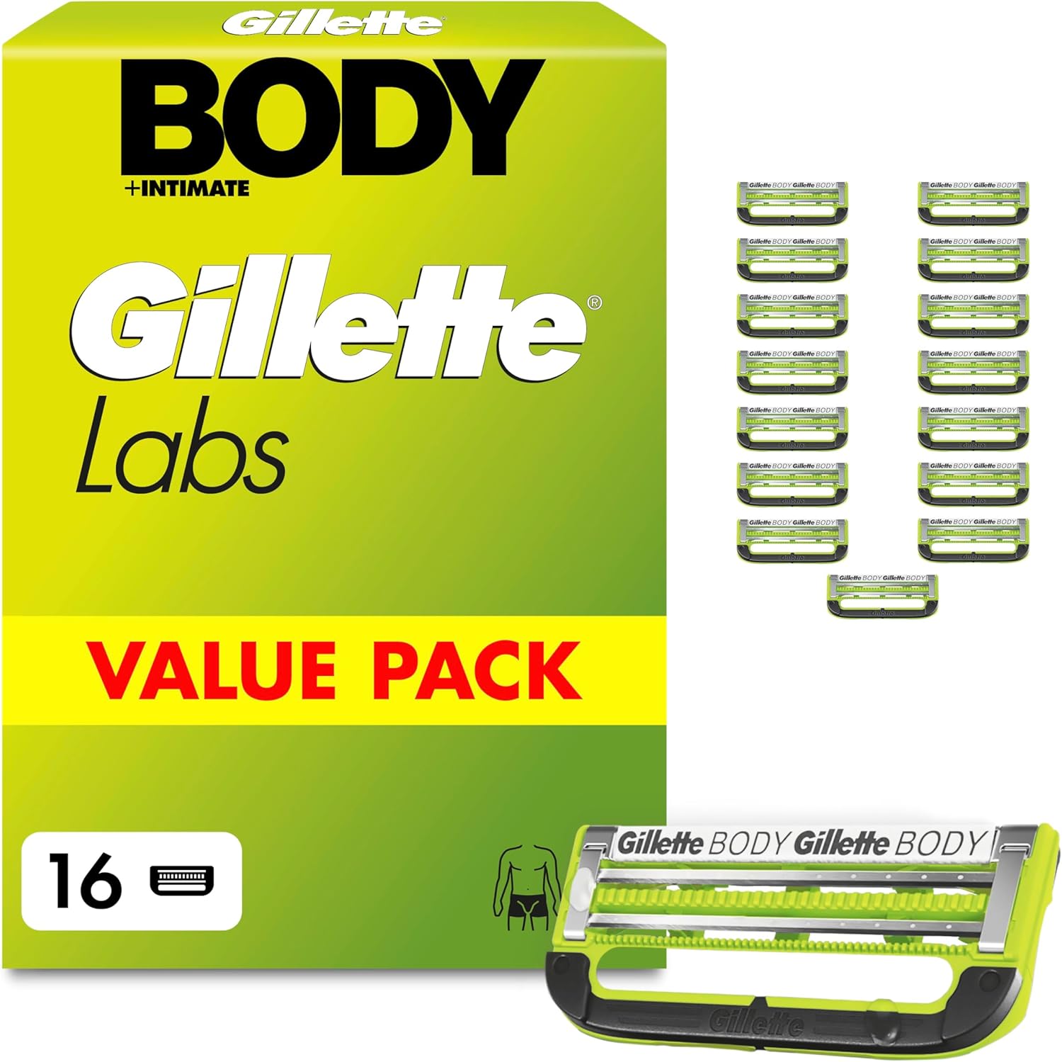 Gillette Labs Body + Intimate – 16 recharges pour rasage du corps et de la zone intime (2 lames)