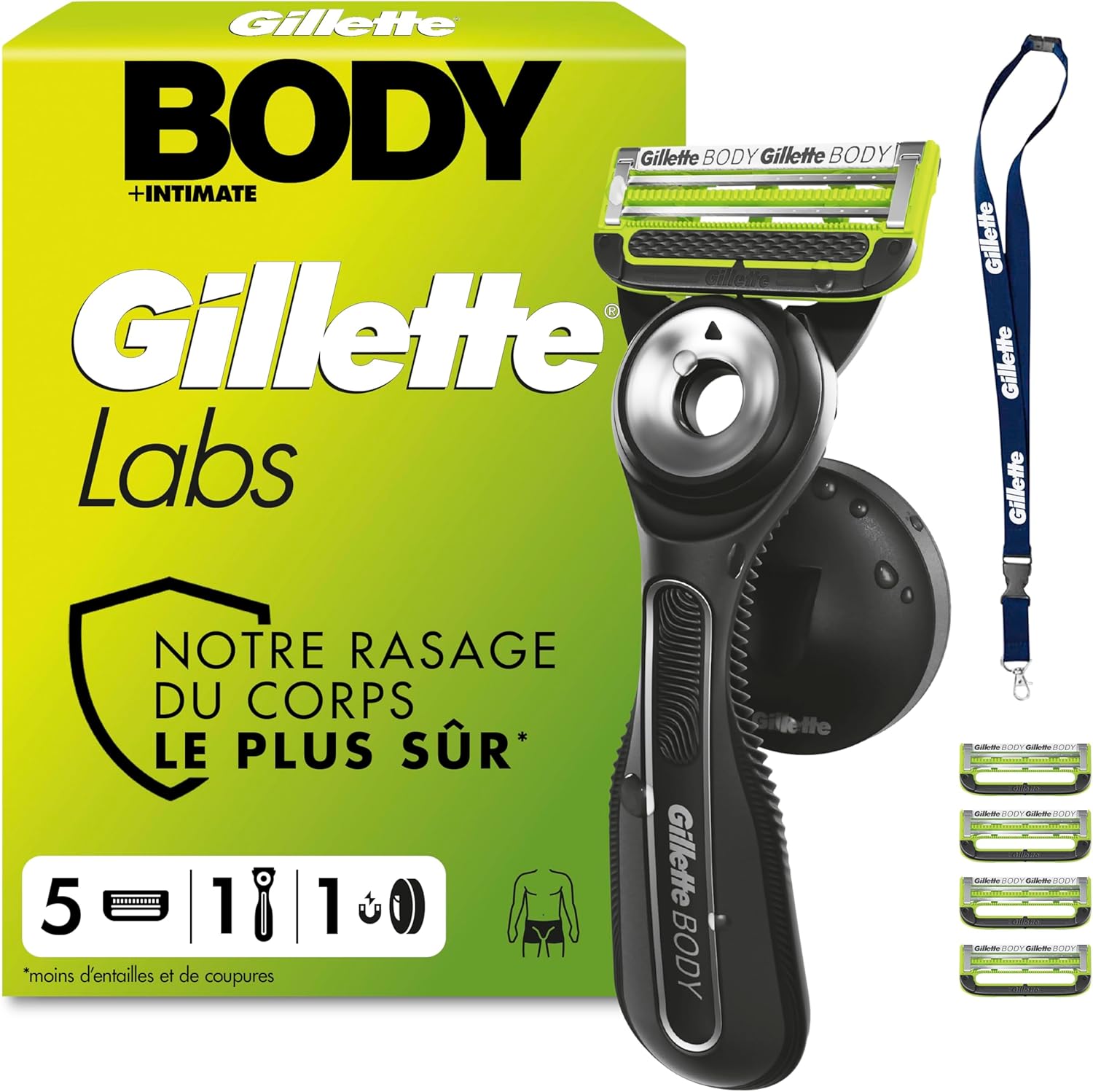 Gillette Labs Body + Intimate rasoir intime homme (corps et pubis) + recharge de lames