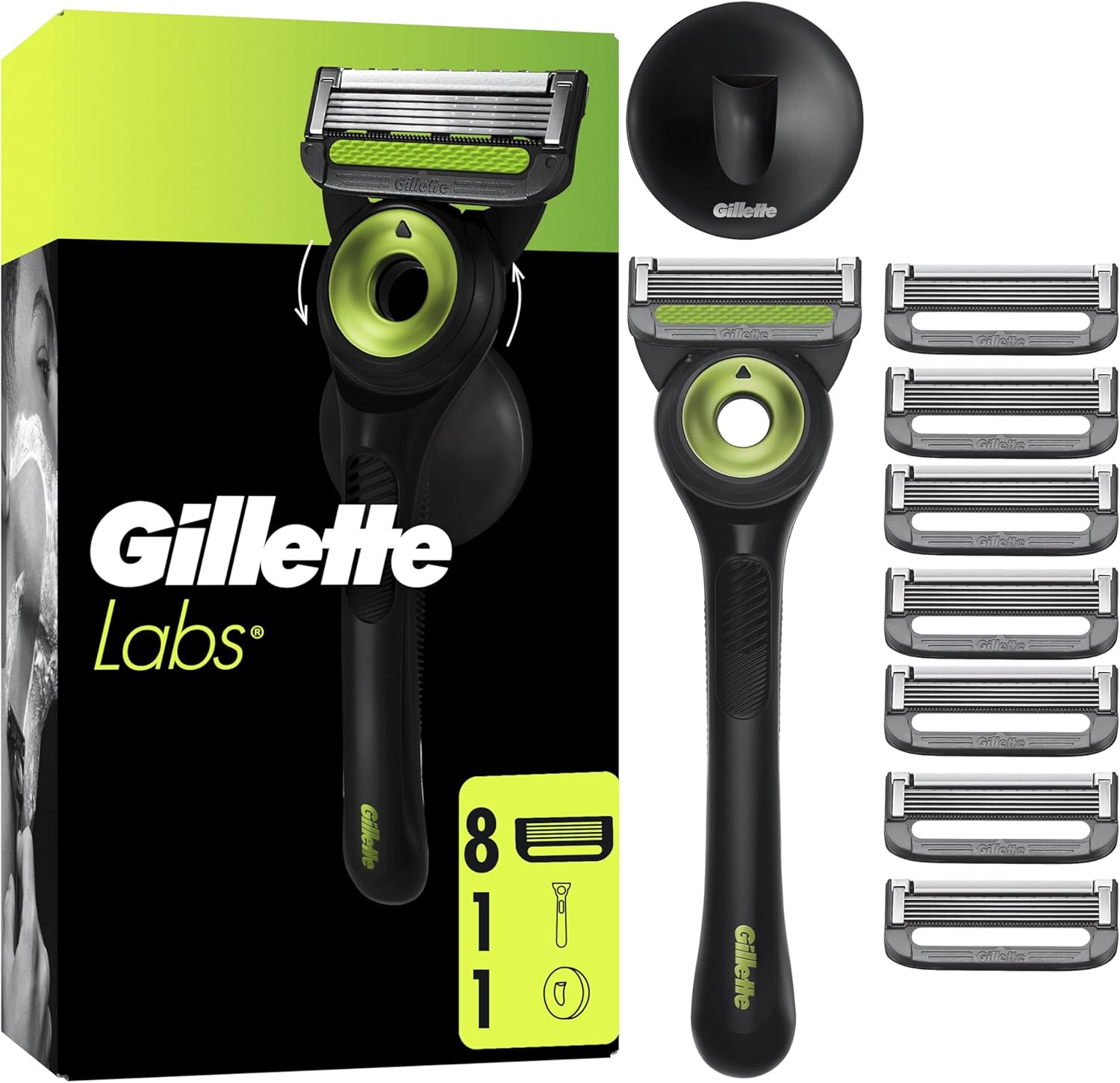 - Gillette Labs lot de 10 recharges de rasoir pour hommes (barre exfoliante, lames haut de gamme) compatibles GilletteLabs