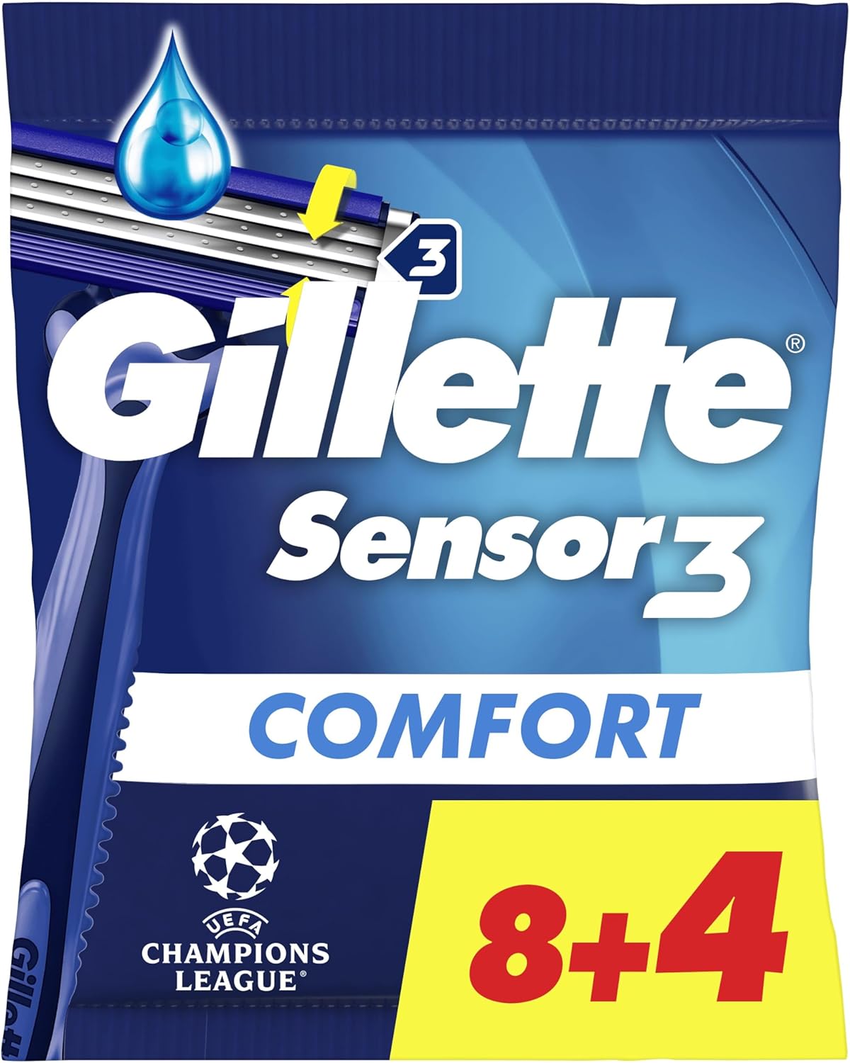 Gillette Sensor3 Comfort – Rasoirs jetables pour homme (lot de 8+4)