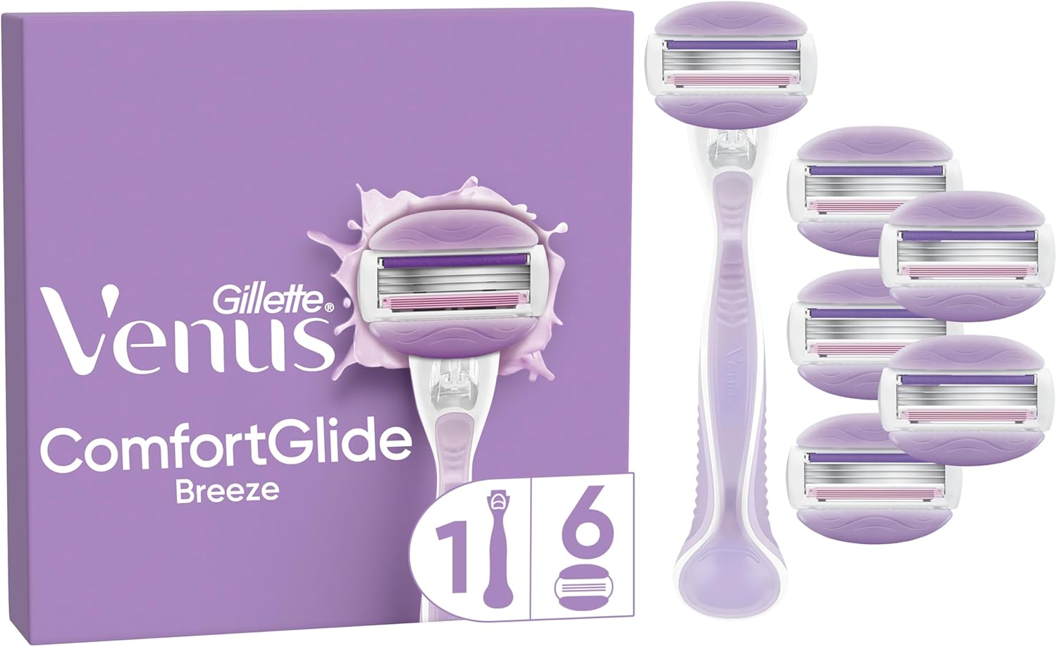 Gillette Venus Pro ComfortGlide Breeze – Rasoir pour femme avec manche réutilisable et 6 cartouches