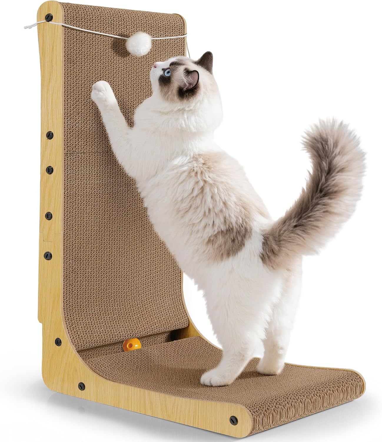 Gimars griffoir pour chat en carton ondulé en forme de L (68 cm) avec boules en peluche