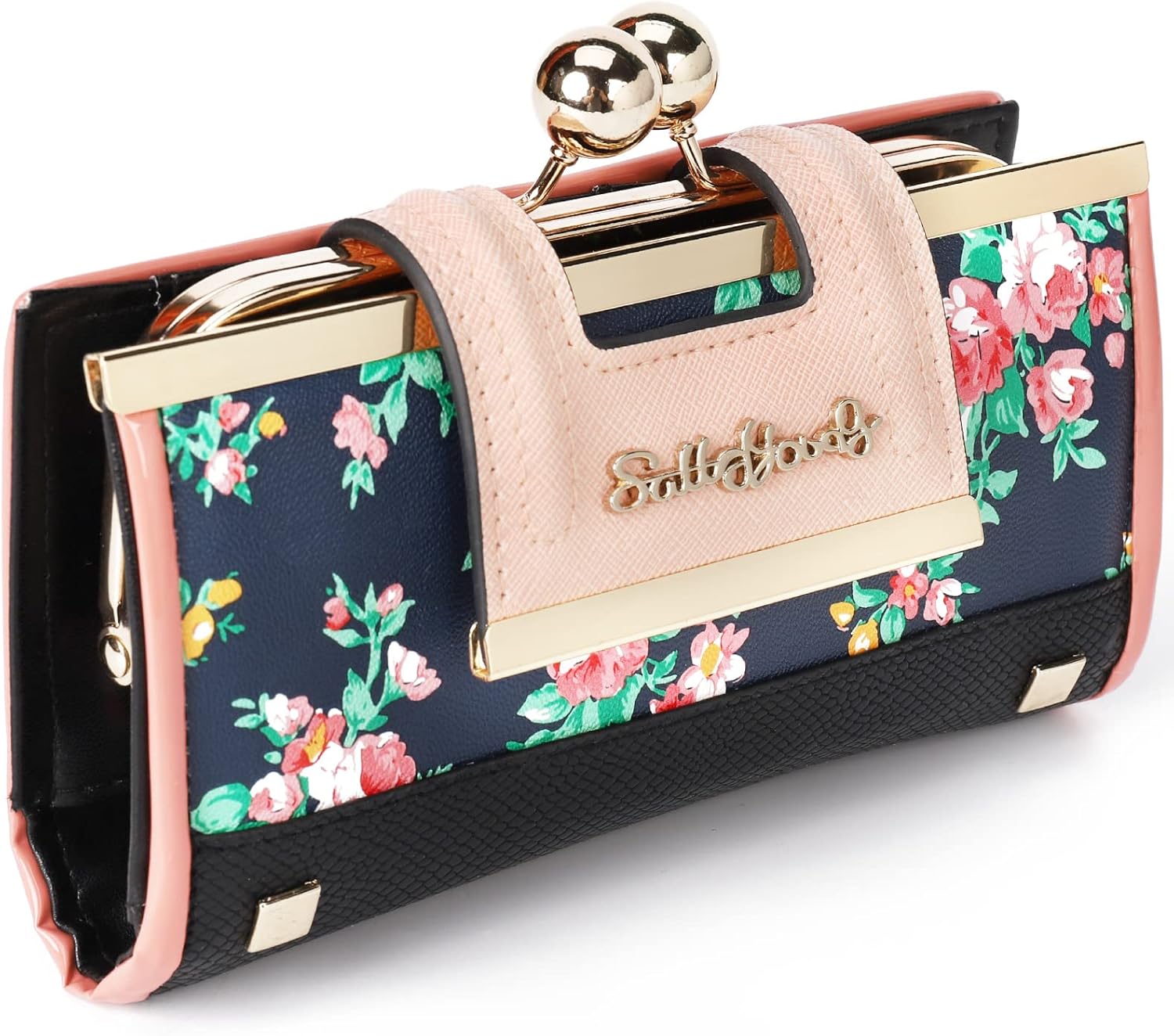 Gladdon Portefeuille femme élégant à motif rosier bleu foncé – 10 emplacements cartes et poche à pièces