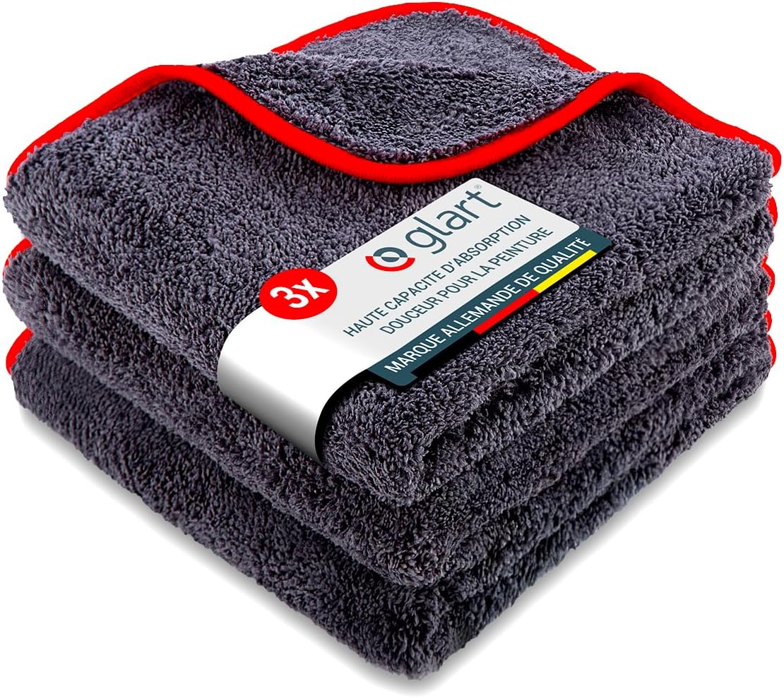 Glart 443TP – Lot de 3 Chiffons Microfibre 40x40 cm, absorbants et polyvalents pour voiture, moto et polissage