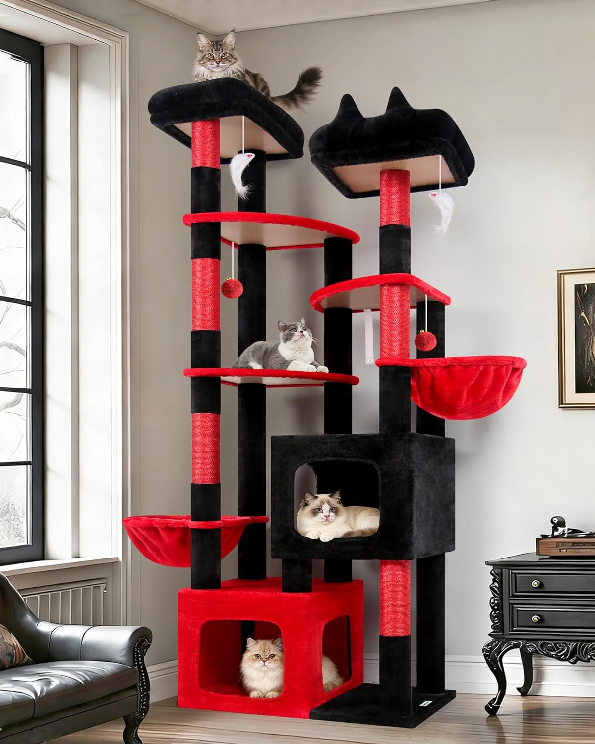 Globlazer Arbre à chat XXL Gothique noir & rouge, 189 cm, pour 3 à 5 grands chats