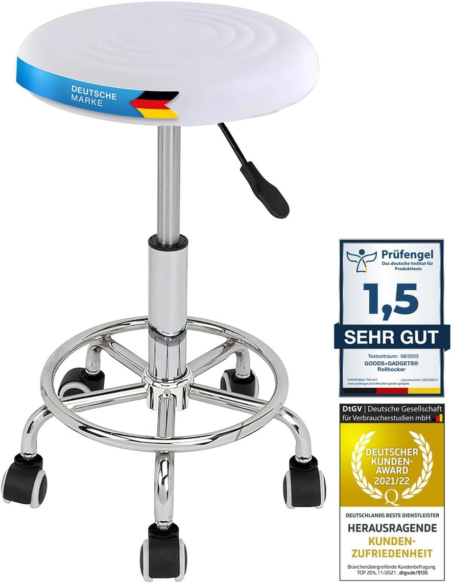 GOODS+GADGETS Ergonomie tabouret de travail enroulable pivotant, hauteur réglable (blanc)