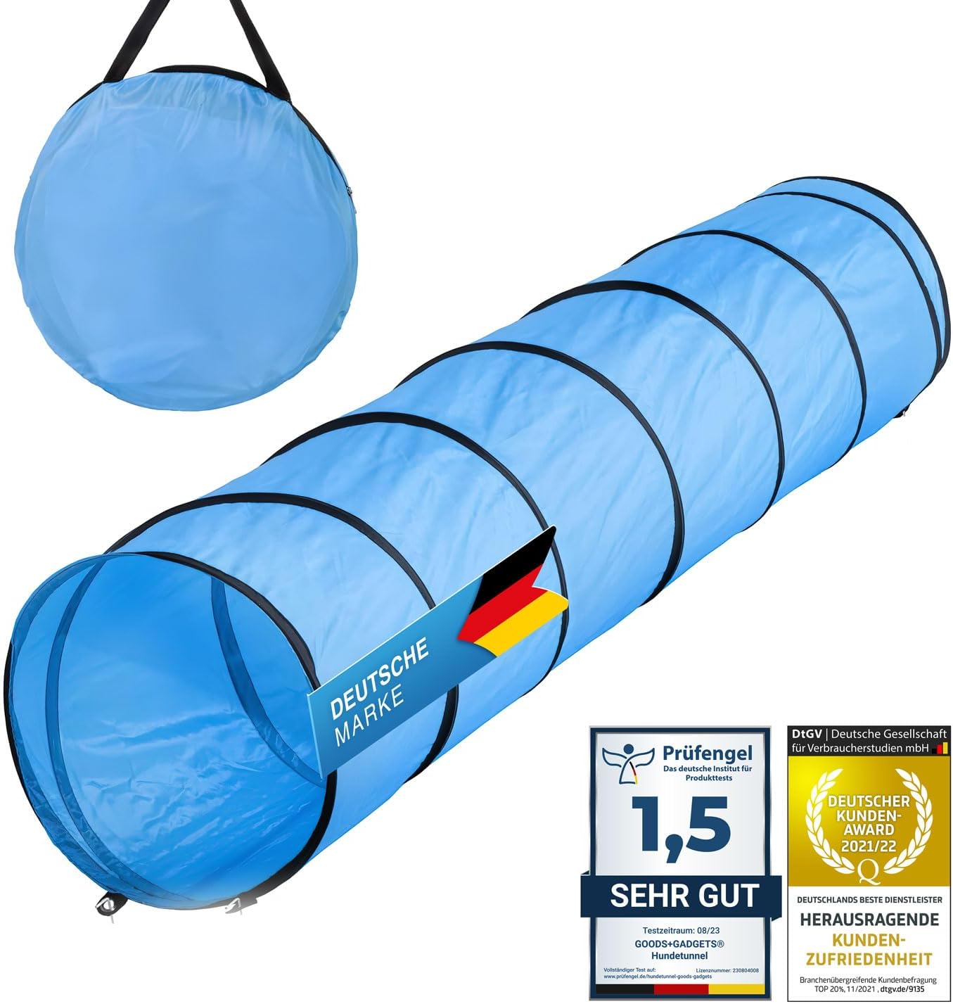 GOODS+GADGETS Tunnel d’agilité pour chien (300 cm) avec patères et sac de transport