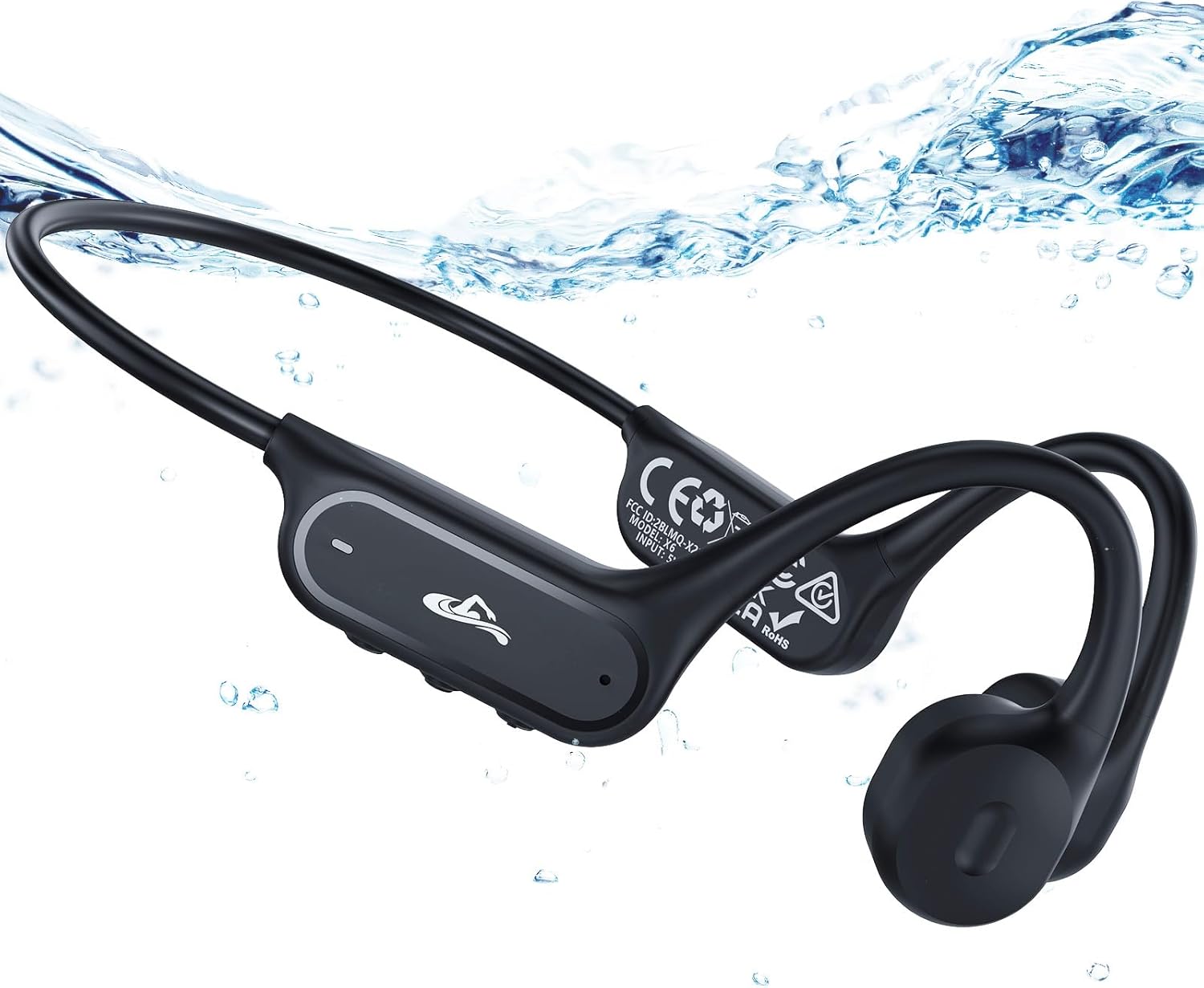 On est ici sur des écouteurs de natation à conduction osseuse, pensés pour bouger (course, cyclisme, randonnée, nage… d’après le positionnement du produit). L’idée est simple : écouter de la musique et passer des appels tout en gardant l’oreille « moins fermée », grâce à une conception ouverte. Et surtout, le modèle intègre un lecteur MP3 avec mémoire de 32 Go, pour pouvoir écouter sans téléphone.