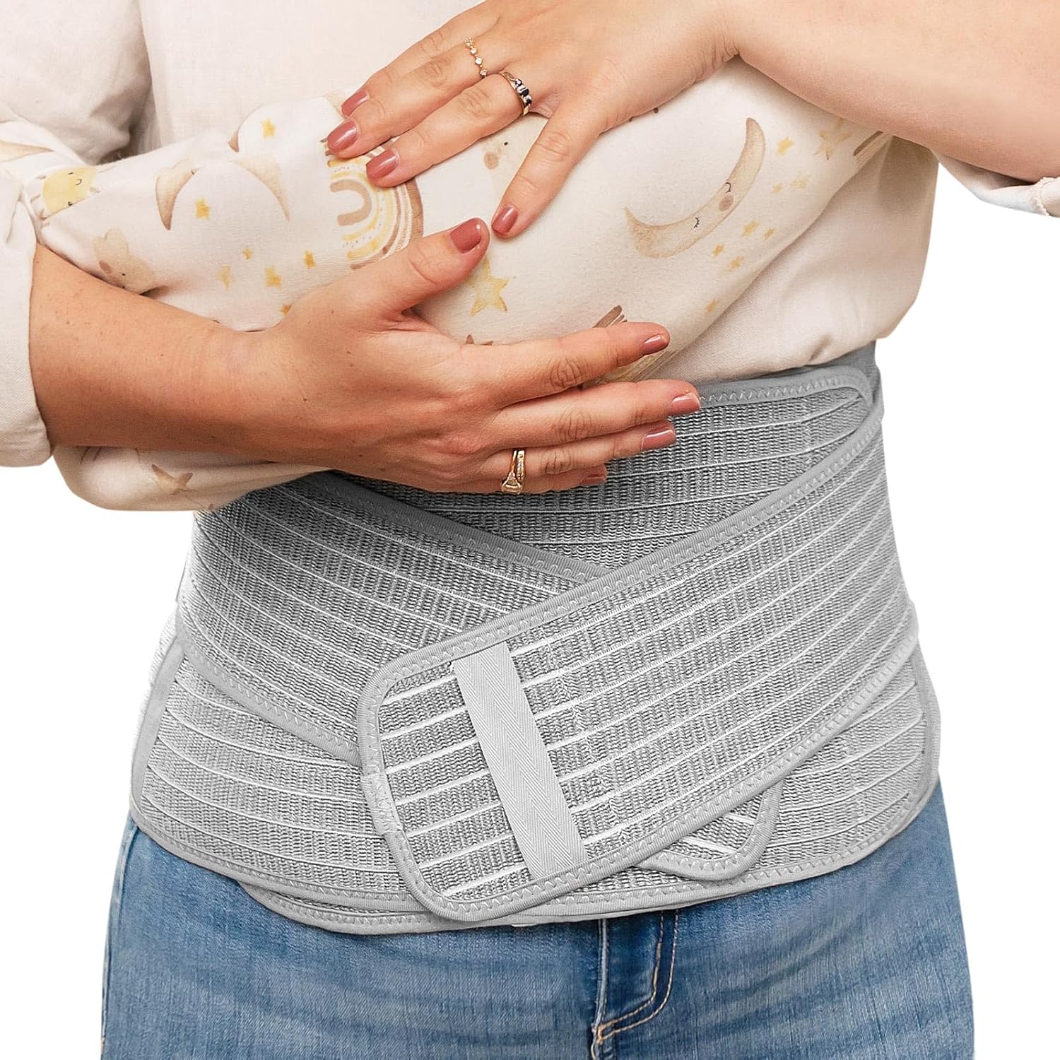 haakaa Ceinture abdominale post-partum : bandage souple réglable pour la récupération après accouchement naturel ou césarienne