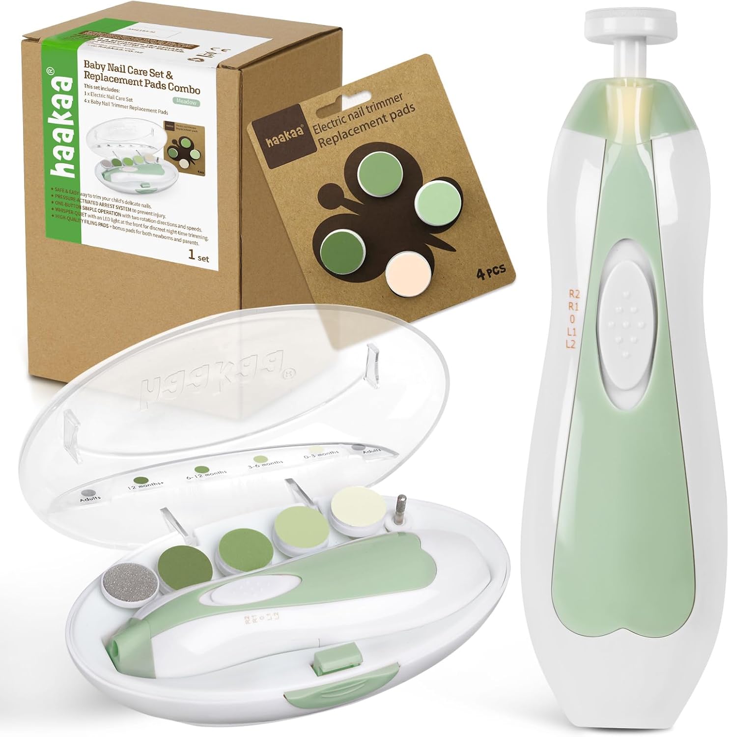 haakaa Coupe-ongles électrique pour bébés : kit de lime avec 10 tampons de rechange (couleur vert)