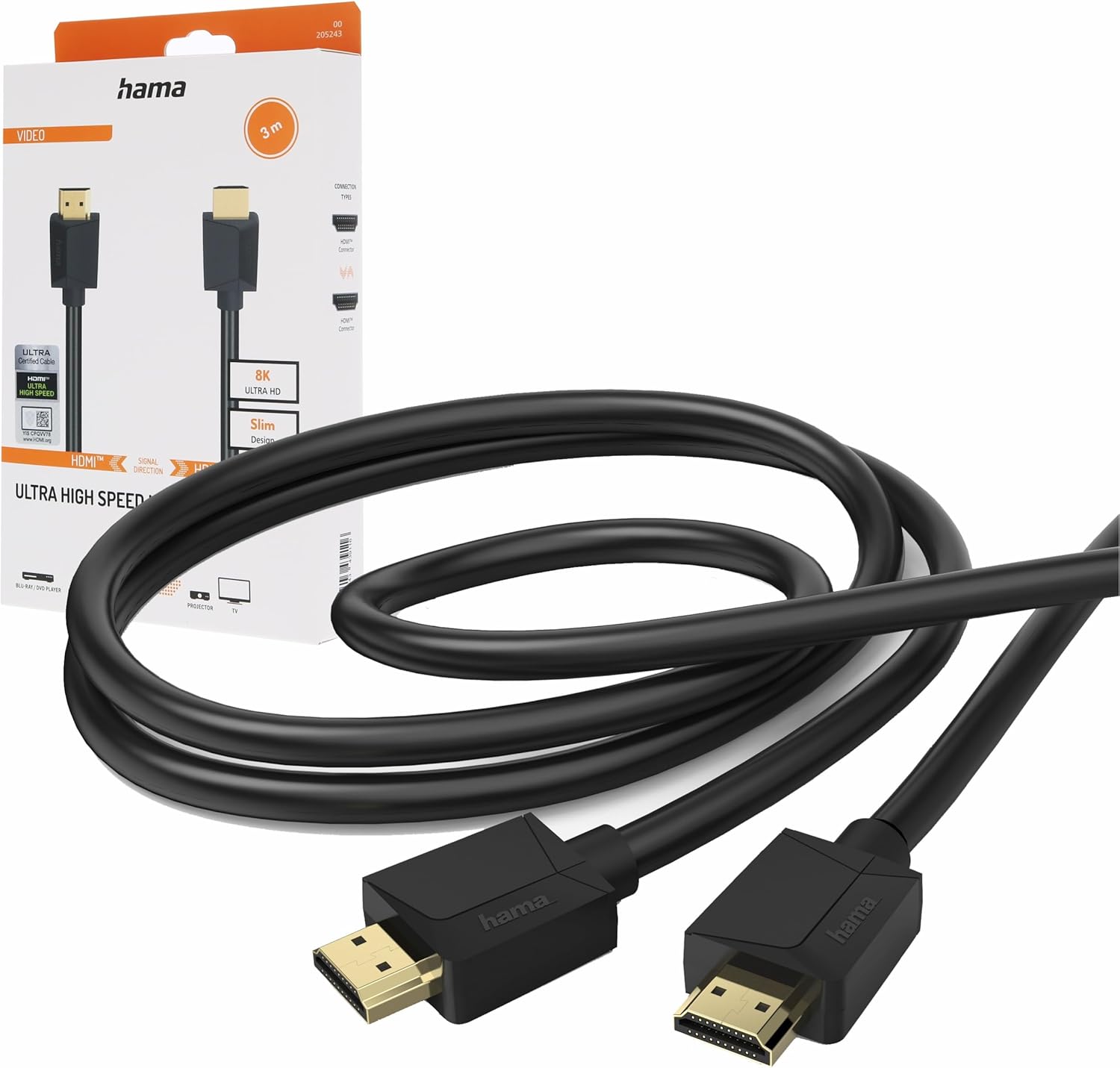 Hama câble HDMI ultra haute vitesse certifié mâle-mâle 3,0 m – 8K 60 Hz / 4K 120 Hz, noir