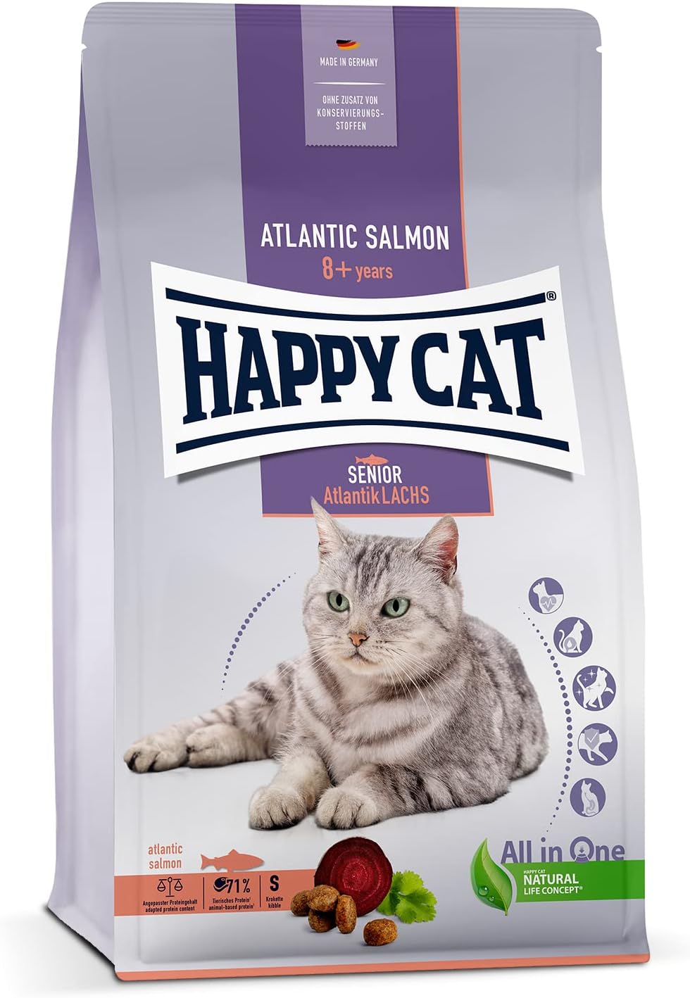 Happy Cat 70611 Senior Atlantik Saumon – croquettes sèches pour chats seniors dès 8 ans (1,3 kg)