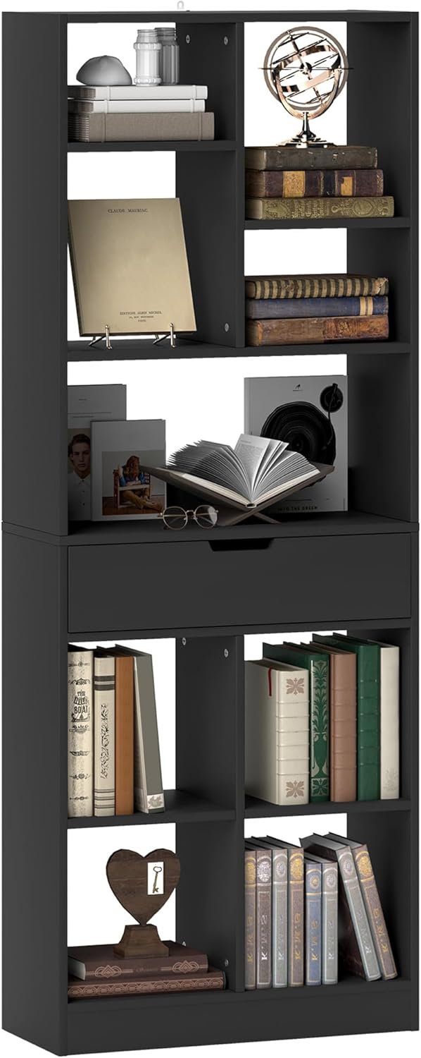 HOMCOM Bibliothèque avec tiroir et 9 compartiments ouverts, 60 x 26 x 158 cm (noir)