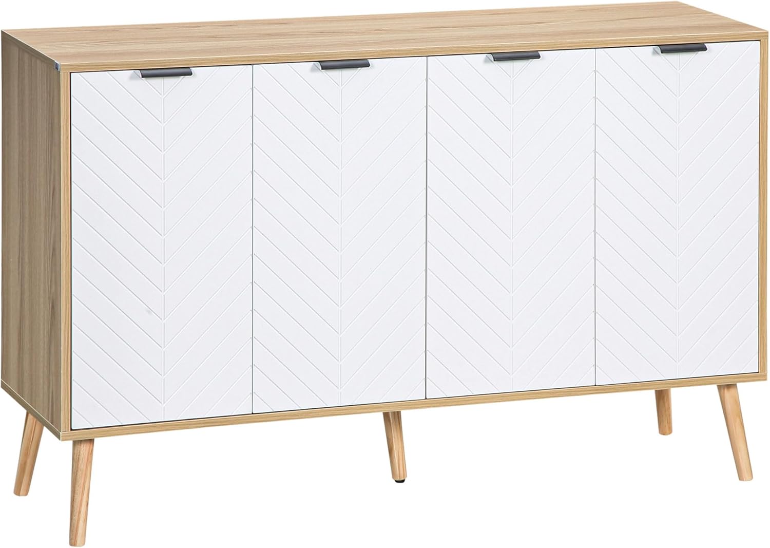HOMCOM Buffet Salon avec 4 portes et étagère réglable (120 x 35 x 77,4 cm) blanc et bois naturel