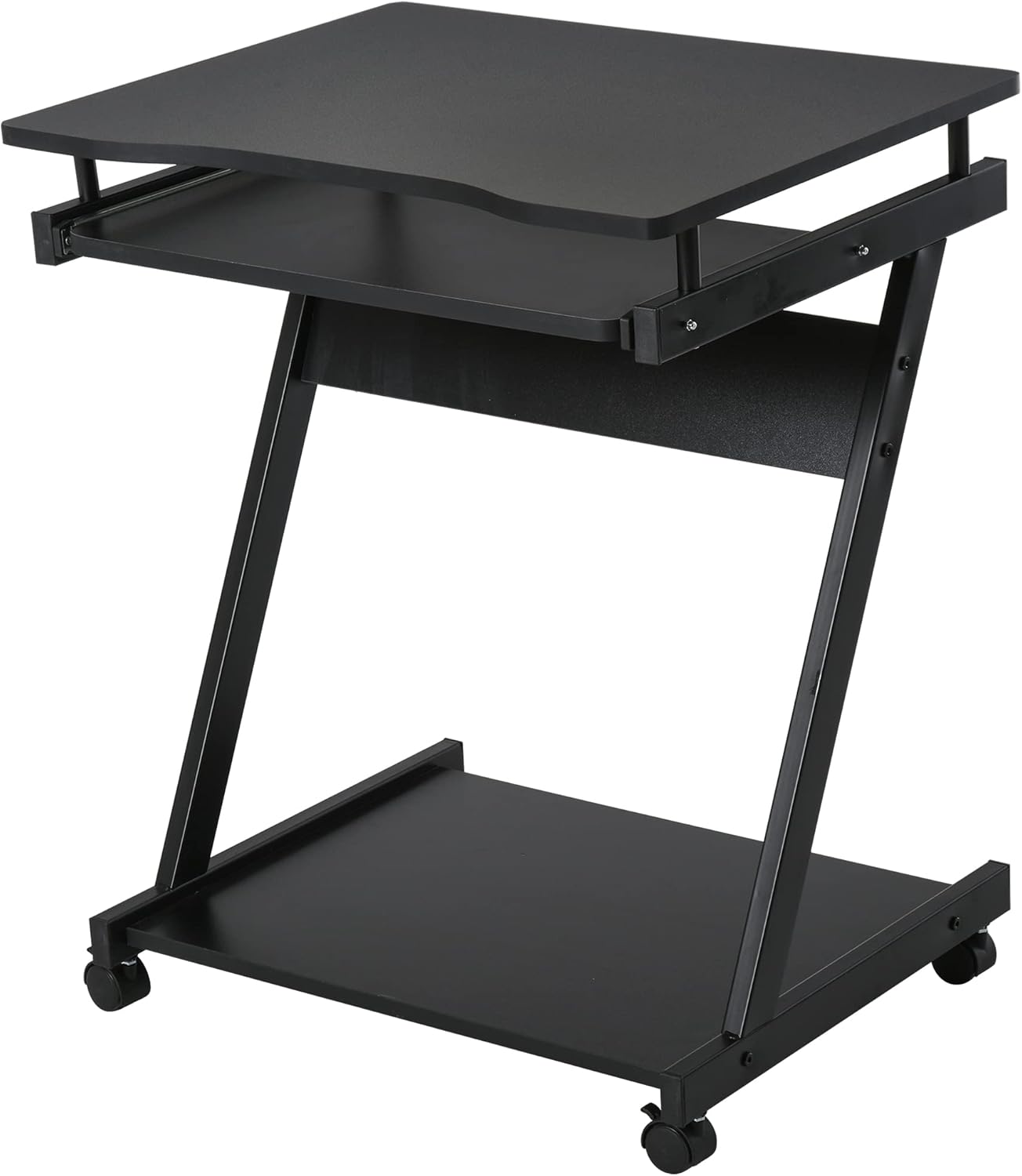 HOMCOM bureau informatique roulant mobile avec tablette coulissante clavier et étagère (noir)