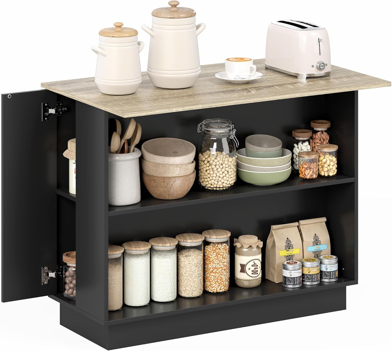 HOMCOM peut être un bon choix si vous voulez une desserte d’îlot qui combine plan de travail + rangement ouvert + placards, avec une tablette intérieure réglable. Le tout est annoncé avec une structure en panneau de particules mélaminé et des détails de fermeture pratiques (loquet à pression, charnières en acier inoxydable). Pour une cuisine à optimiser, c’est cohérent et assez polyvalent.