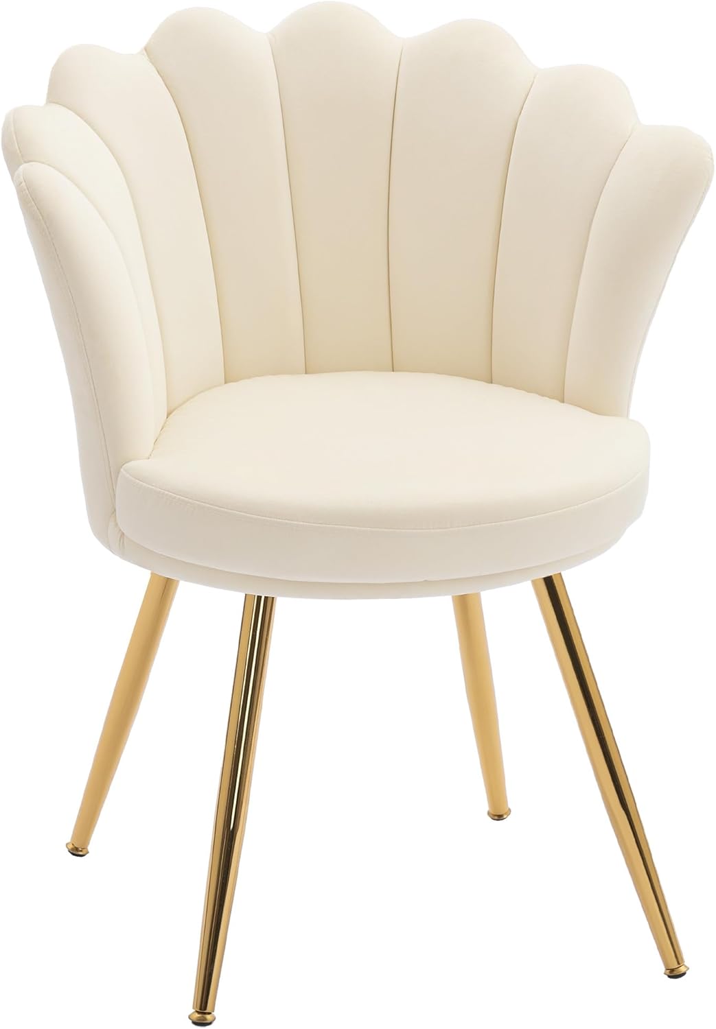 HOMCOM fauteuil coquillage en velours beige avec pieds en métal doré