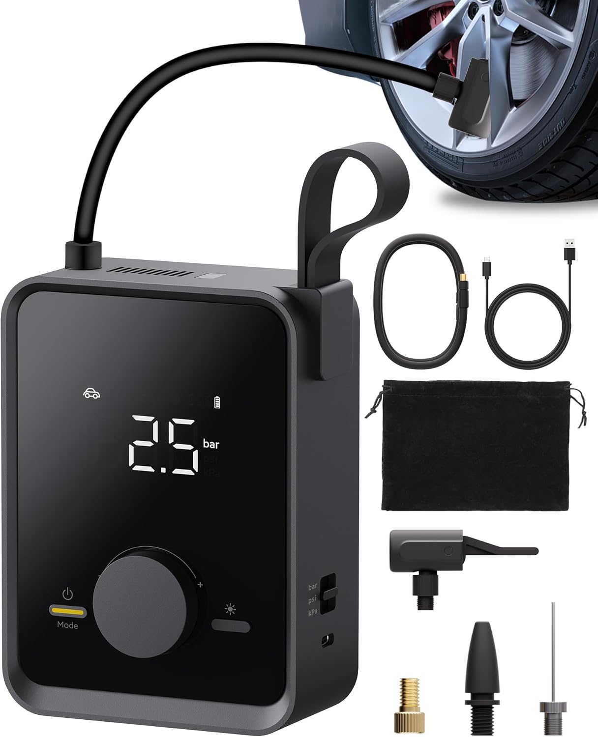 Ce compresseur d'air portatif HOTO apporte une solution rapide et pratique pour gonfler pneus de voiture, moto et vélo lors de vos déplacements. Grâce à sa batterie de 7500mAh et son moteur 12V, il vise une autonomie notable pour les interventions d'urgence et les sorties en plein air. En usage quotidien il permet d'éviter les longues attentes et facilite la préparation des trajets.