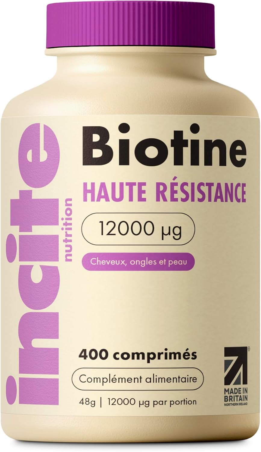 La biotine est une vitamine souvent recherchée quand on s’intéresse au cuir chevelu, à la santé des cheveux et plus largement au métabolisme. Avec les comprimés Incite Nutrition, le principe reste simple : prendre un comprimé par jour pour apporter de la biotine, afin de soutenir des fonctions décrites sur l’étiquette (maintien de cheveux/peau/muqueuses, métabolisme des macronutriments, métabolisme énergétique et fonctionnement psychologique et du système nerveux).