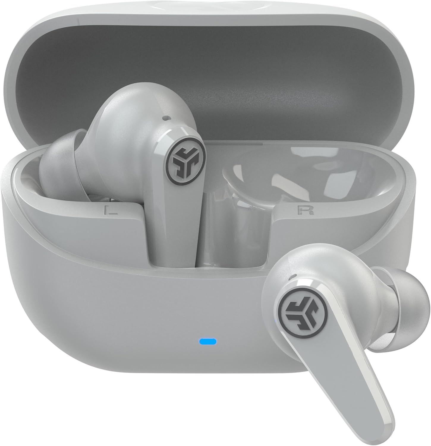 JLab Go Pods ANC – écouteurs Bluetooth sans fil hybrides à réduction de bruit, jusqu’à 26 h d’autonomie, IP55, blanc Nuage
