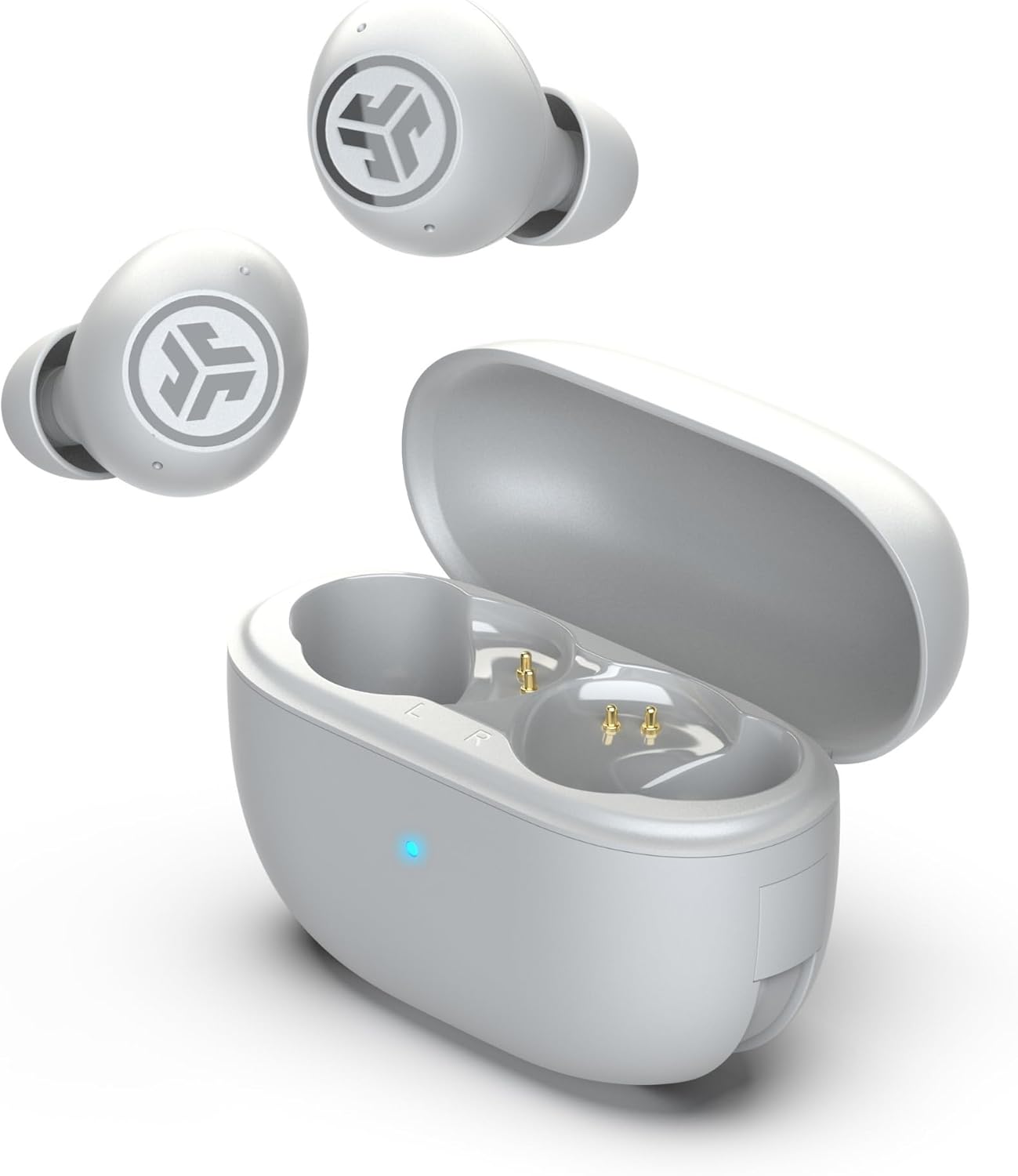 - JLab Go Pods ANC – écouteurs Bluetooth sans fil hybrides à réduction de bruit, jusqu’à 26 h d’autonomie, IP55, blanc Nuage