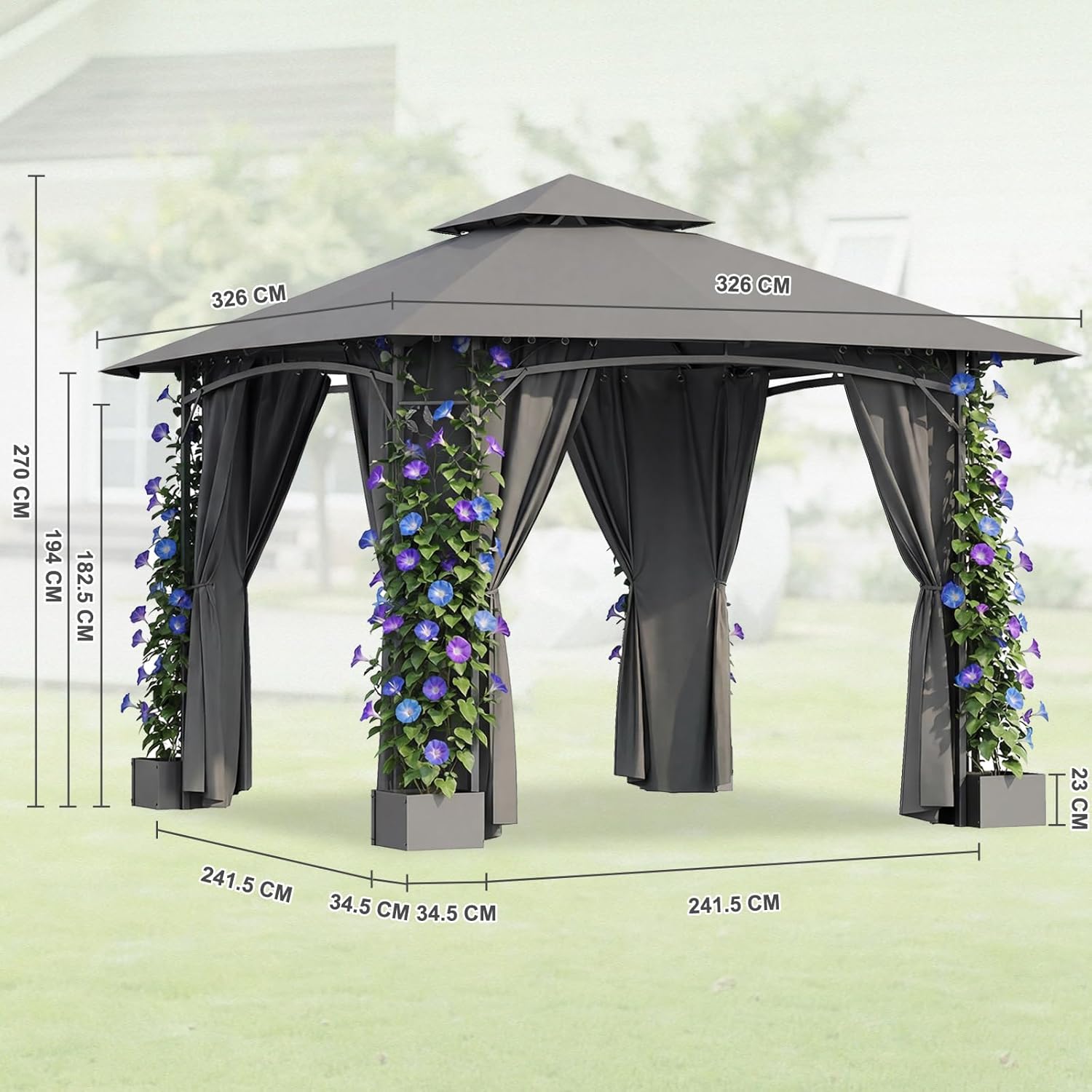 JUMMICO Pavillon Jardin 3.3x3m Bac à Fleurs