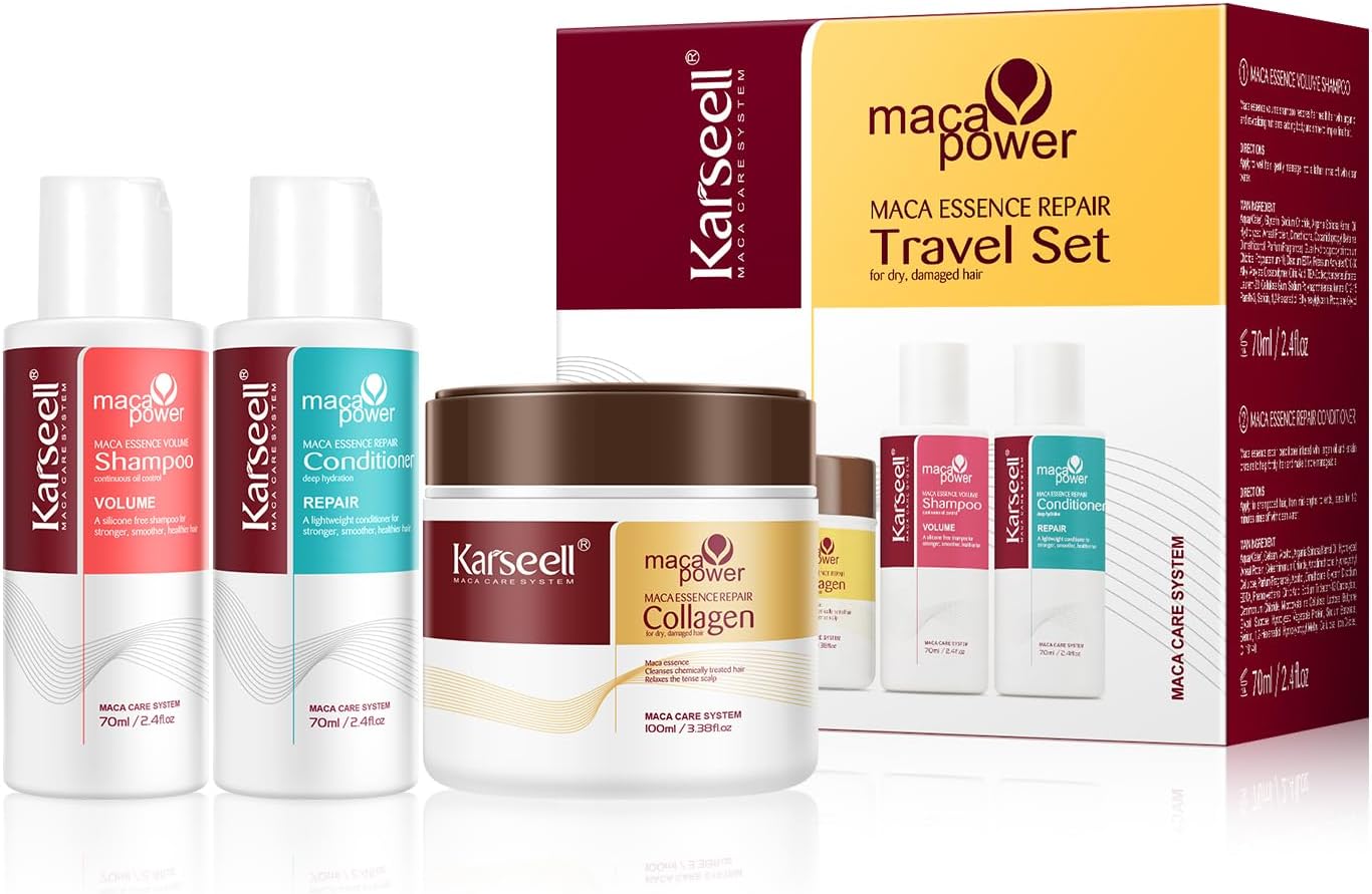 Karseell Coffret de soins capillaires Collagen (masque + shampooing volumateur + après-shampooing) en formats voyage