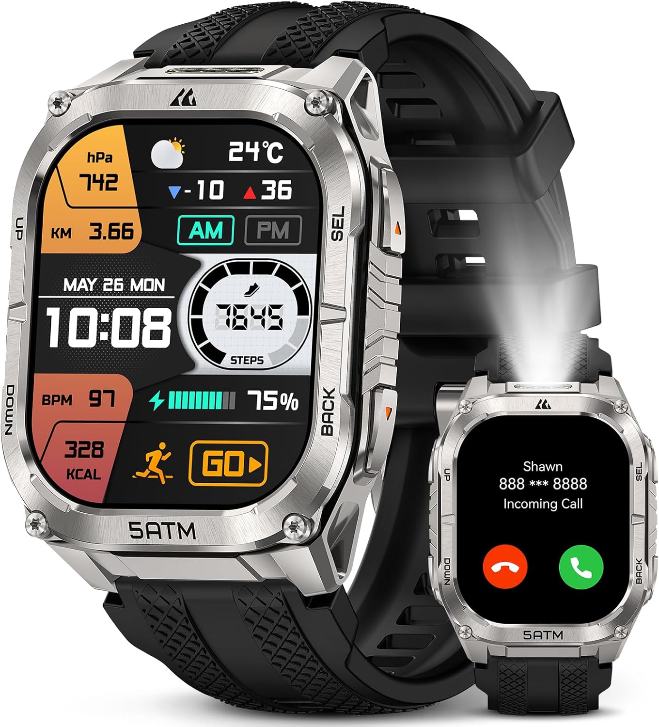 Cette montre connectée allie fiabilité militaire et technologie avancée pour l’usage outdoor. Conçue avec une structure de protection à 360° et un boîtier entièrement métallique, elle résiste à des conditions extrêmes et assure une stabilité opérationnelle en toutes circonstances. Son écran AMOLED de 1,96 pouce offre une lisibilité nette même en lumière directe, et le verre Corning Gorilla Gen 3 prolonge la durée de vie du produit. Grâce au GPS double bande et au talkie-walkie intégré, elle suit vos déplacements avec précision et facilite la communication sur le terrain. Une lampe torche LED à 5 niveaux complète l’ensemble pour les sorties nocturnes ou les interventions d’urgence. En complément, le capteur 4PD et le suivi du sommeil et du SpO2 vous aident à gérer votre bien‑être au quotidien tout en restant connecté.