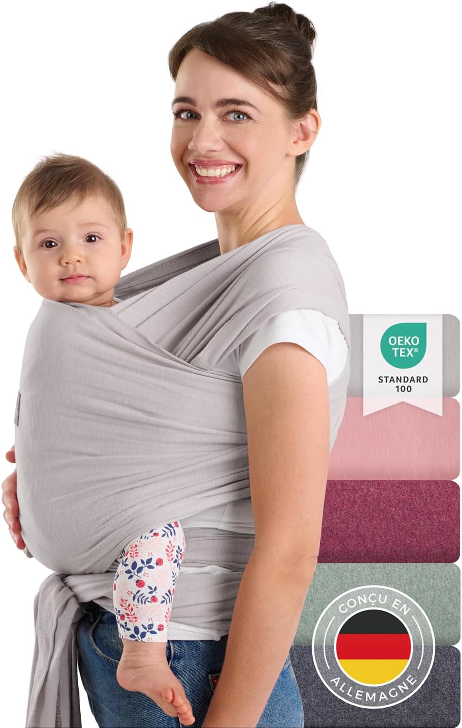 Laleni Écharpe de portage nouveau-né jusqu’à 15 kg en coton (gris clair) – porteur physiologique