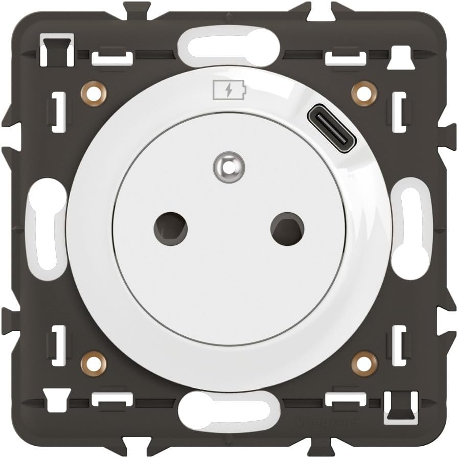 Legrand Prise électrique murale Céliane Surface avec terre, chargeur USB 7,5 W intégré (blanc)