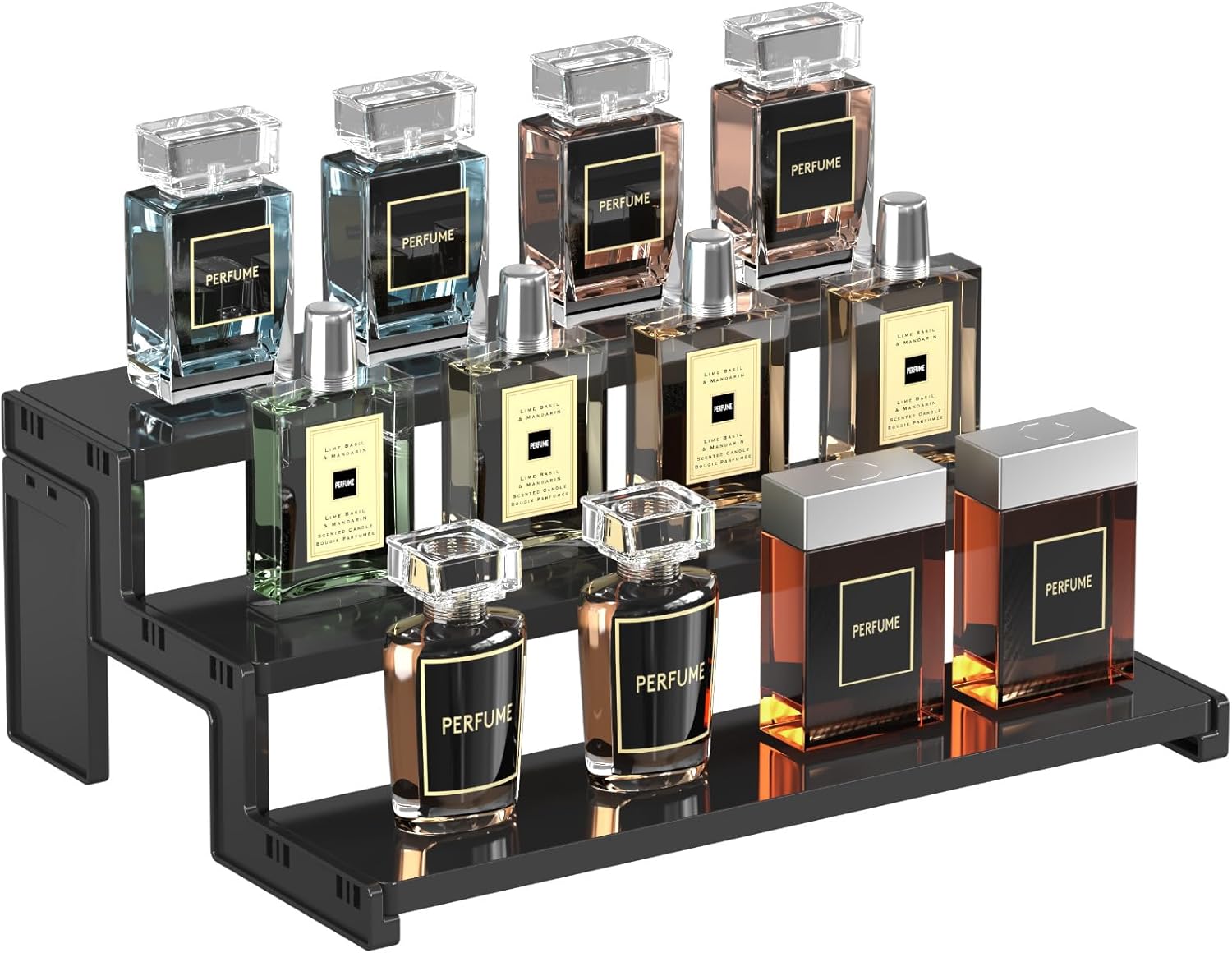 Lifewit présentoir acrylique noir à encastrer, 3 niveaux – rangement et mise en valeur de parfums, figurines et cosmétiques