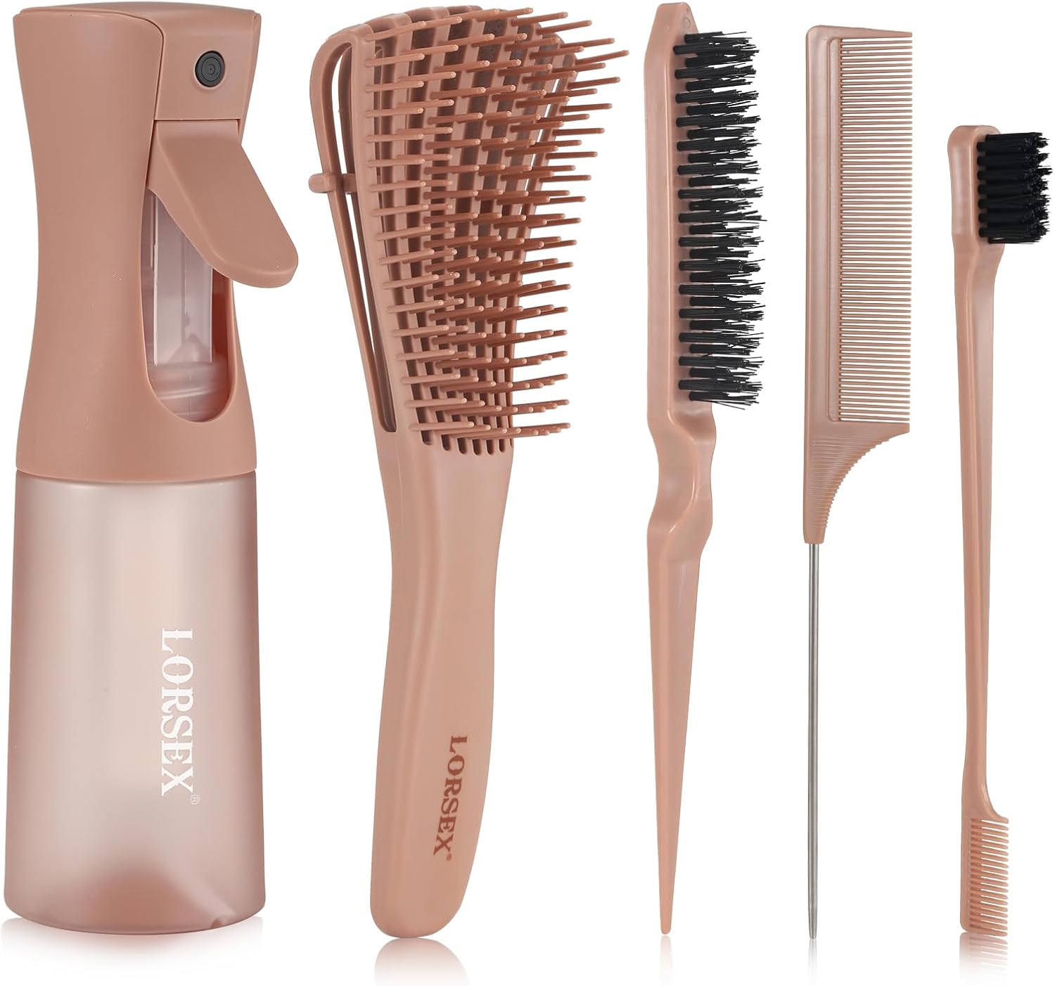 LORSEX Brosse à cheveux avec flacon pulvérisateur 200 ml – brosse démêlante pour cheveux afro 3a à 4c (Terre cuite)