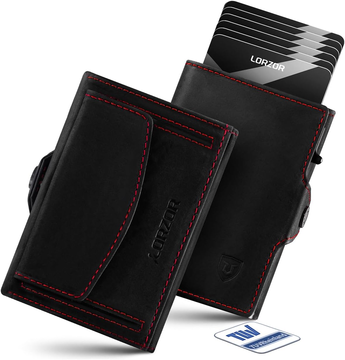 LORZOR Porte Carte Homme XXL en cuir véritable avec blocage RFID et porte-monnaie