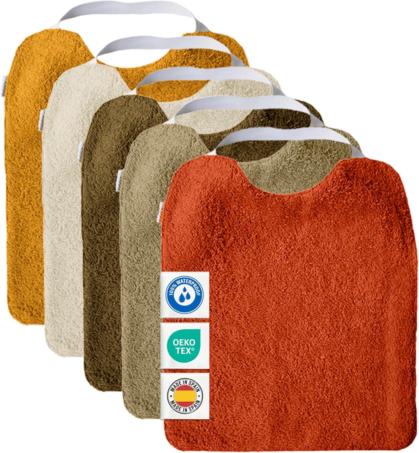 - MIMUSELINA lot de 5 bavoirs bébé imperméables réutilisables en coton premium (éponge) avec élastique au cou