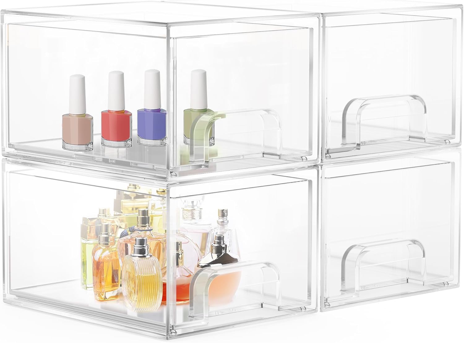 Lot de 4 organisateurs de tiroir en acrylique empilables pour salle de bain et cuisine