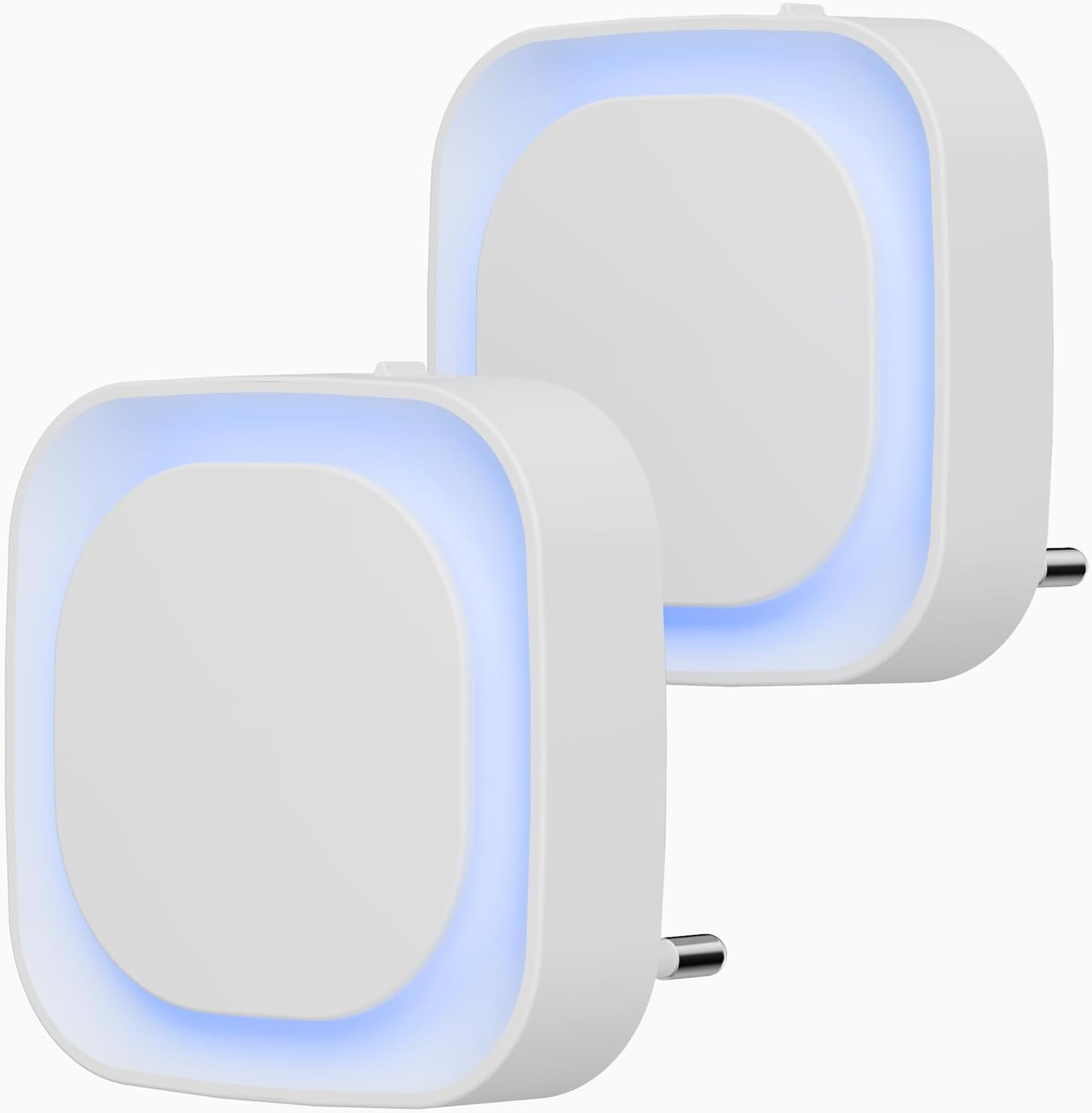 Lot de 2 veilleuses LED YUNLEX avec capteur crépusculaire et variateur à 3 niveaux (Azur)