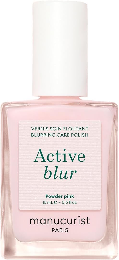 Le vernis Manucurist Active Blur est présenté comme un soin-floutant tout-en-un, pensé pour sublimer instantanément les ongles sans recourir à une base ou un top coat. Son effet nude rose poudré se veut soft et mat, tout en corrigeant visuellement les irrégularités. Sur le papier, il combine routine beauté et soin, ce qui peut séduire celles et ceux qui privilégient la simplicité d’un seul geste.