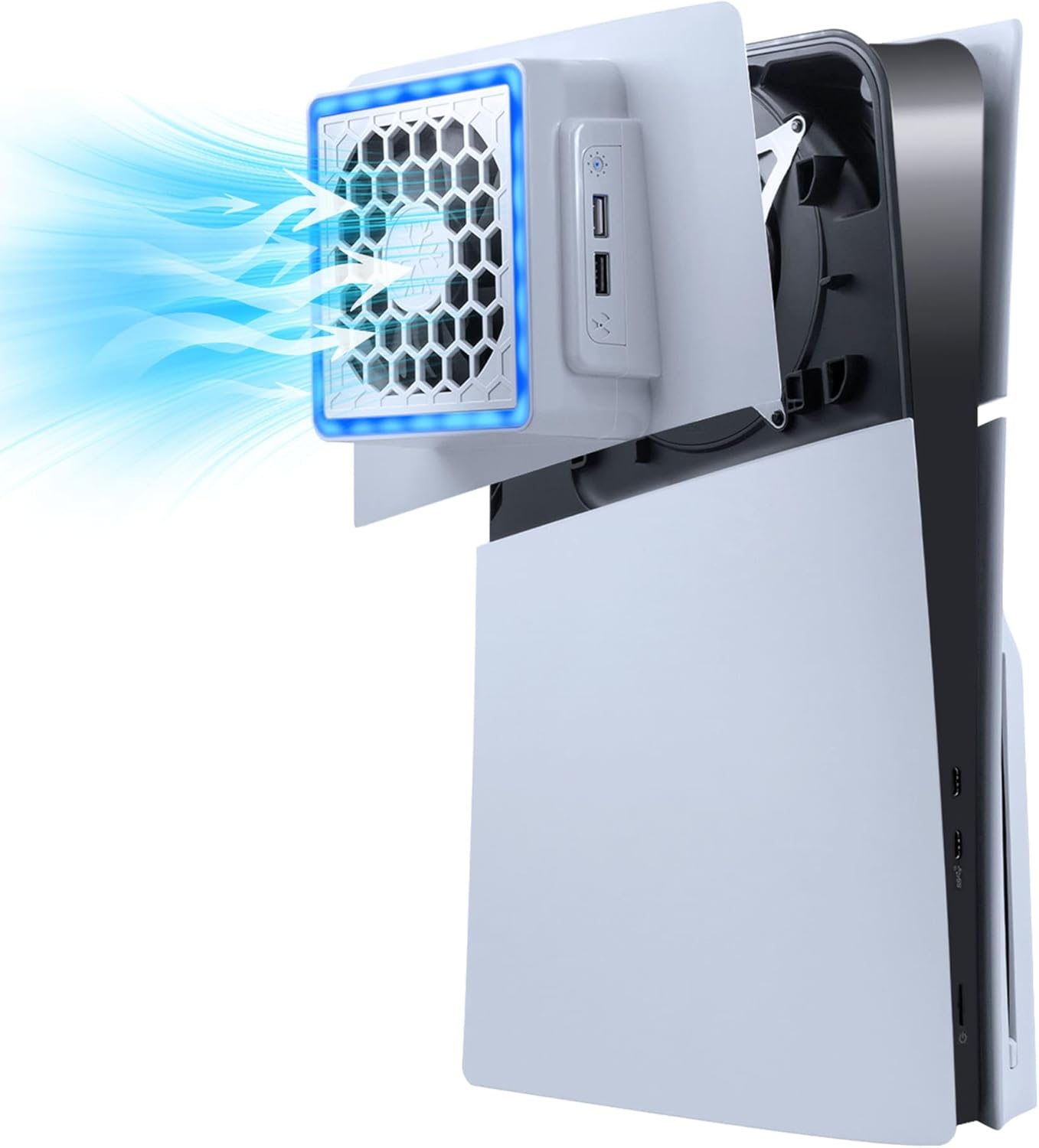 - Tolesum Ventilateur de refroidissement pour PS5 Slim avec éclairage LED RGB (USB arrière) – Noir