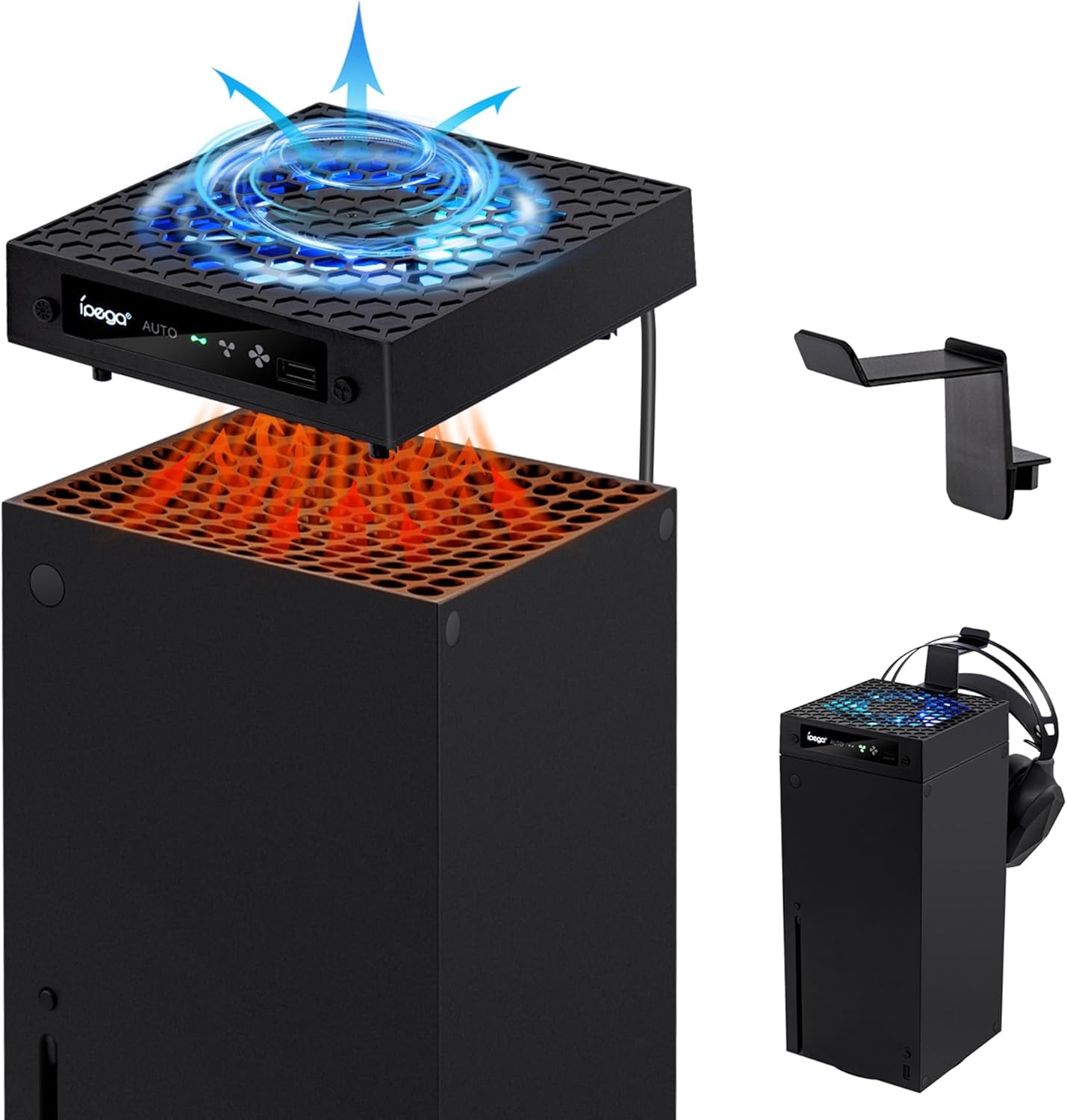 Mcbazel ventilateur de refroidissement automatique pour Xbox Series X (PWM, 3 vitesses, RGB, support casque) – Noir