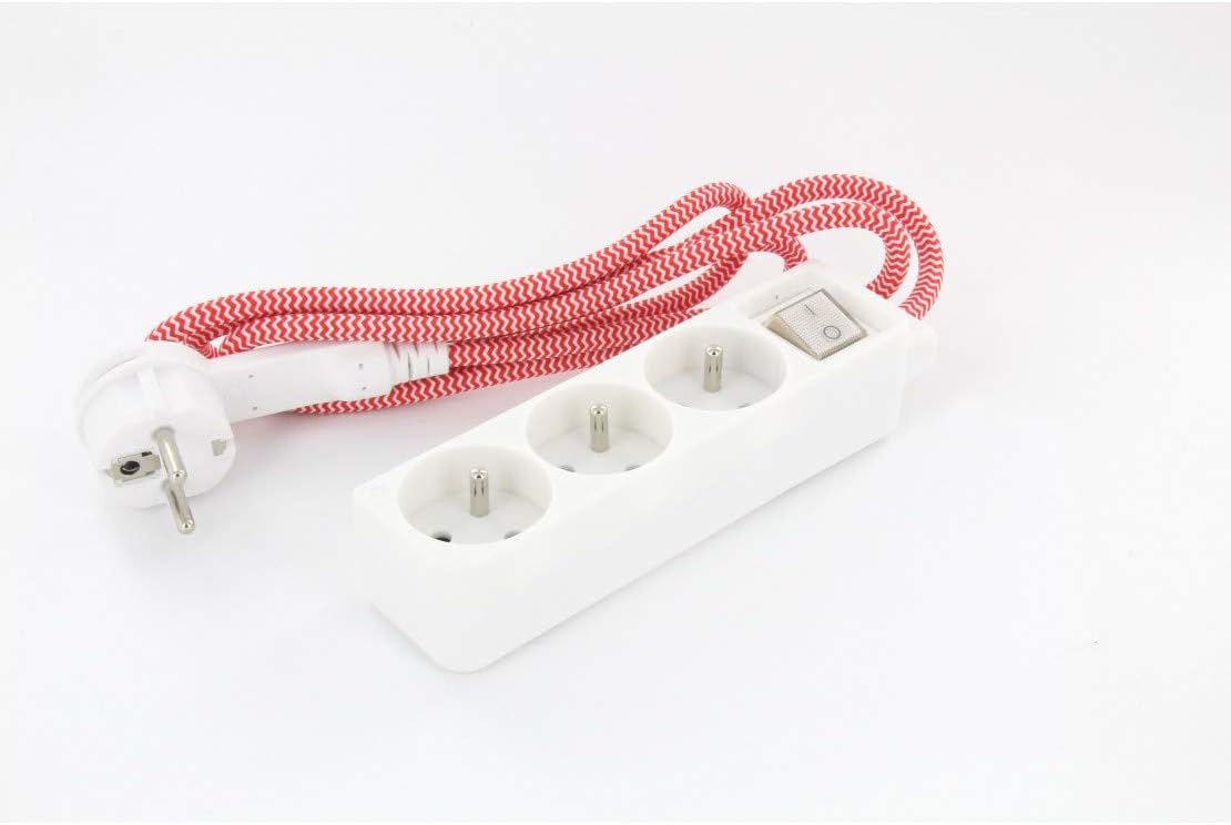 Mini multiprise 3x16A avec cordon textile 3 m — CHACON (rouge/blanc)