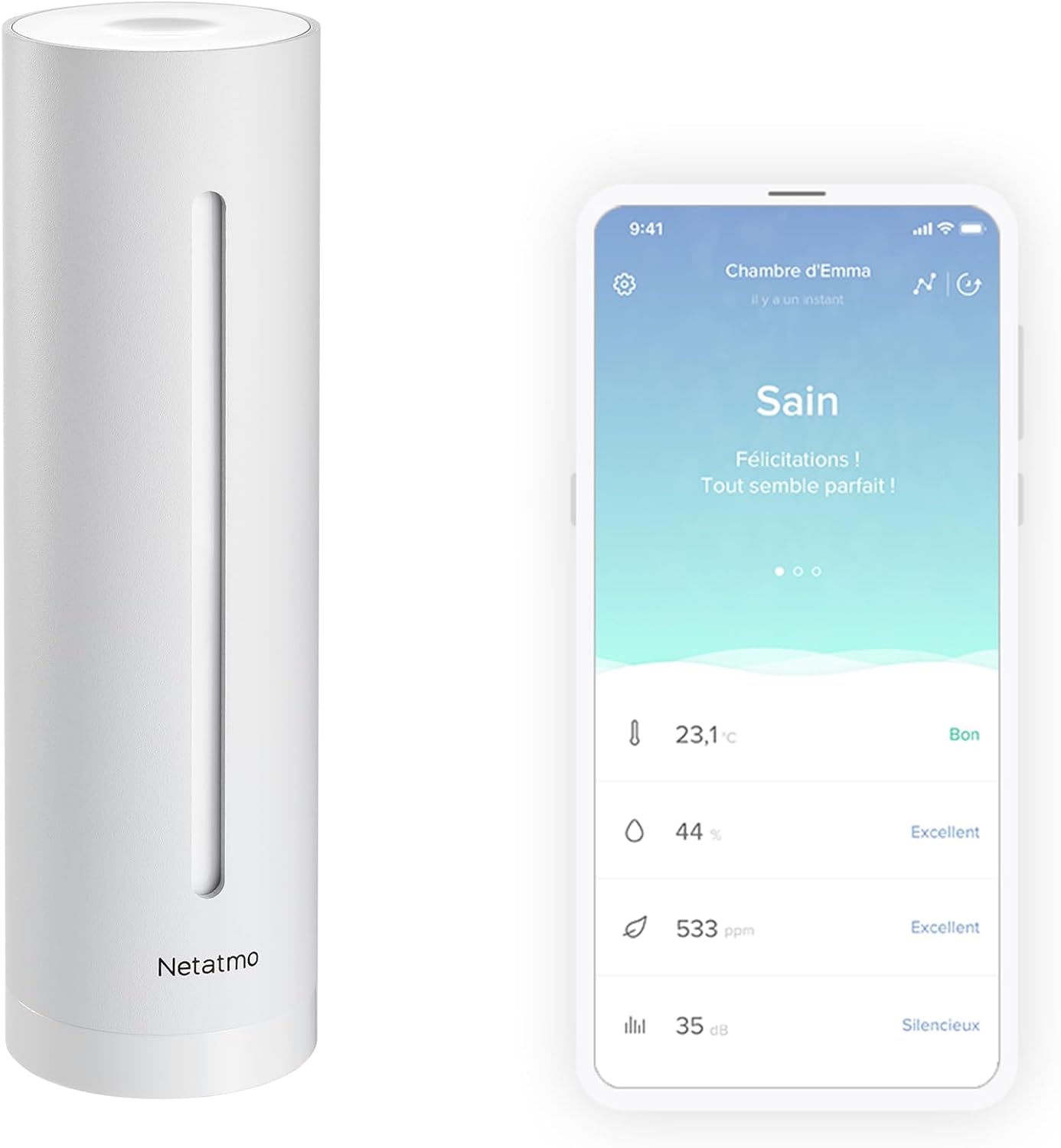 Le Netatmo Capteur Qualité Air Intérieur Intelligent est un dispositif connecté destiné à surveiller en continu l’environnement intérieur de votre domicile. Il mesure simultanément la température, l’humidité, le bruit et le CO2, offrant une vision claire de la qualité de l’air et du confort dans chaque pièce. Si vous cherchez à améliorer le cadre de vie, surtout pour les bébés, les animaux domestiques ou les personnes sensibles, cet appareil peut être un complément utile d’un système domotique existant.