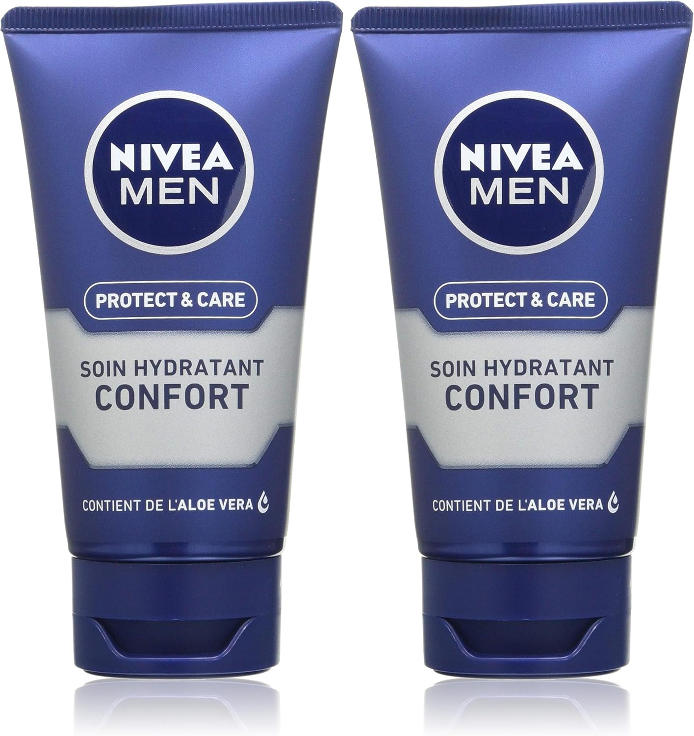 NIVEA MEN Protect & Care Soin Confort Hydratant visage (vitamine B5 & aloe vera) – lot de 2 x 75 ml