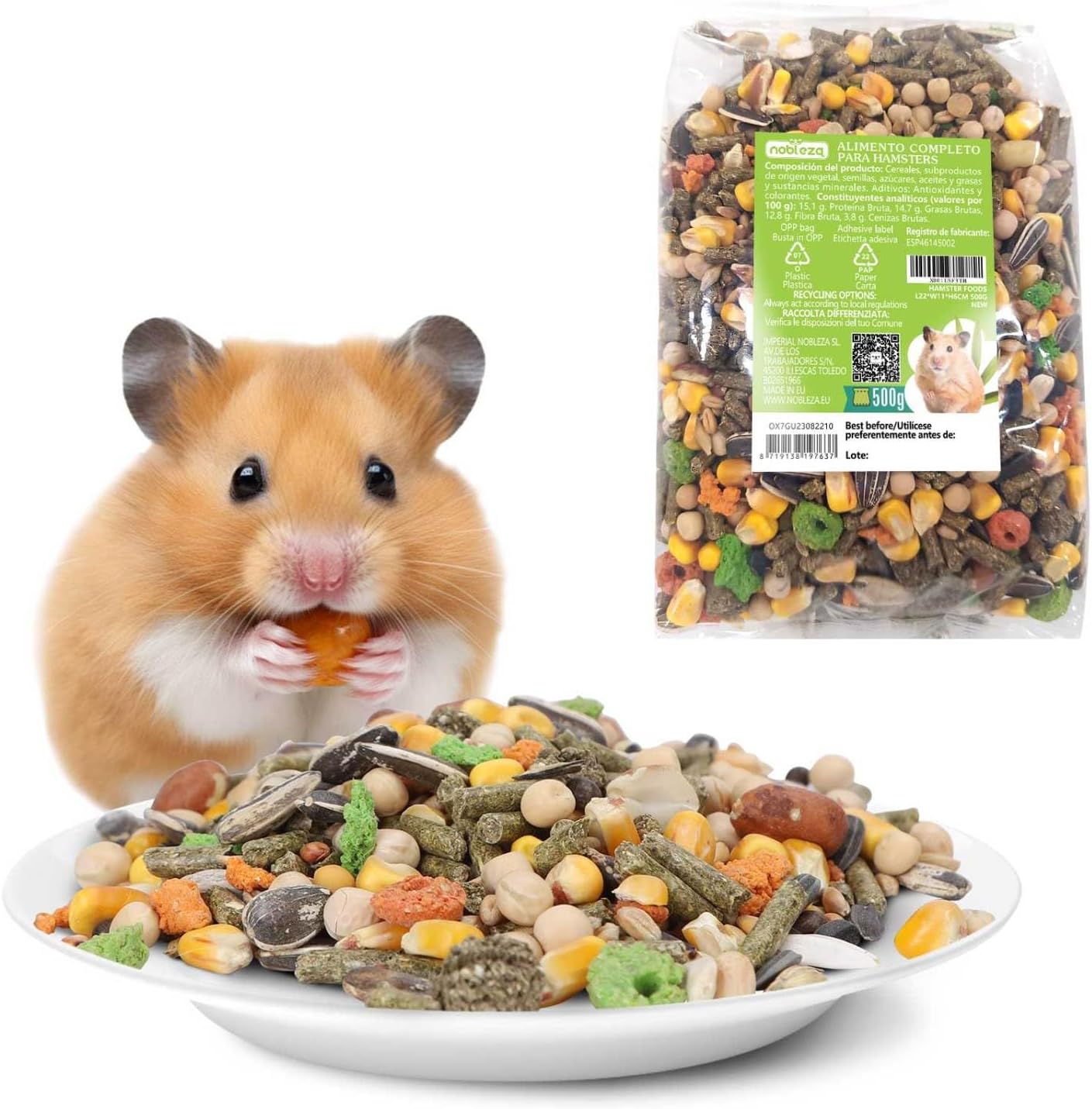 Si vous cherchez une alimentation pour hamster pensée pour être “simple à gérer” au quotidien, le mélange Nobleza (500 g) peut intéresser. Le produit est présenté comme une alimentation multi-grains, avec une nutrition mixte et des matières premières annoncées comme fraîches et de qualité. L’idée générale, sur le papier, est de couvrir les besoins alimentaires d’un rongeur en proposant aussi des fibres et des céréales susceptibles d’accompagner la digestion.