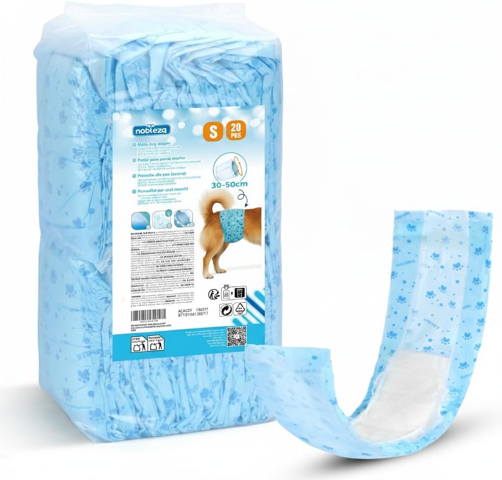 Si tu cherches une solution simple pour gérer l’incontinence, le marquage ou les petits accidents de ton chien mâle, ce lot de 20 couches jetables Nobleza en taille S (tour de ceinture indiqué entre 20 et 40 cm) vise clairement l’efficacité “au quotidien”. Le point de départ, c’est l’ajustement : l’article met en avant une coupe anatomique censée mieux rester en place, ce qui change pas mal la vie quand il faut enchaîner marche, jeux et changements réguliers.