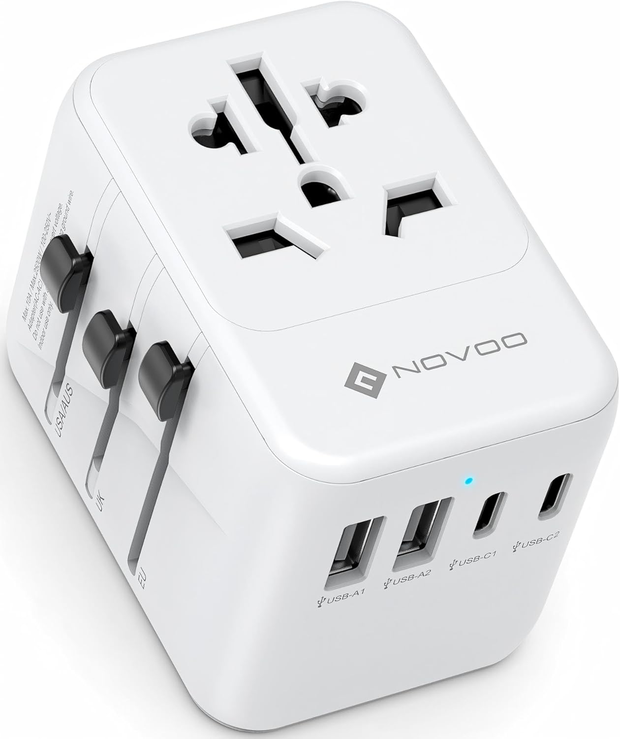 À emporter partout, l’adaptateur de prise internationale NOVOO est pensé pour les voyages d’affaires et les vacances, en particulier lorsque vous passez d’un pays à l’autre. Son format 5 en 1 vous permet de disposer d’un seul point de charge polyvalent, sans avoir à changer d’adaptateur à chaque frontière. Les ports USB et USB-C offrent une flexibilité immédiate pour charger smartphone, tablette ou écouteurs tout en alimentant un ordinateur portable lors d’un séjour en co-working ou dans un hôtel. N’oubliez pas que la tension n’est pas convertie, il faut adapter votre charge en fonction du secteur du pays visité. En somme, c’est une solution pratique et sécurisée pour optimiser l’organisation de vos voyages, tout en garantissant une alimentation fiable pour l’ensemble de vos équipements.