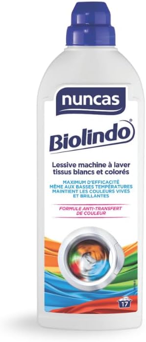 Si tu laves souvent des vêtements mixtes (blancs et colorés, parfois même du noir), la lessive Nuncas Biolindo vise un usage simple : nettoyer en profondeur, tout en limitant les risques d’auréoles et de transfert de couleurs. Sur le papier, c’est une formule orientée “efficacité au lavage” sans te forcer à trier comme un maniaco.