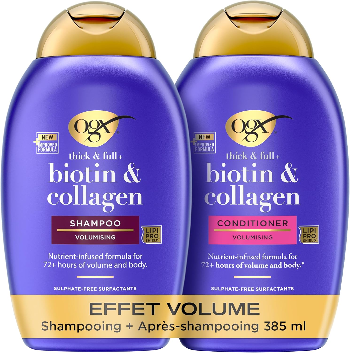 OGX Biotin & Collagen – Shampooing & Après-Shampooing Volume 72h (2 x 385 ml)
